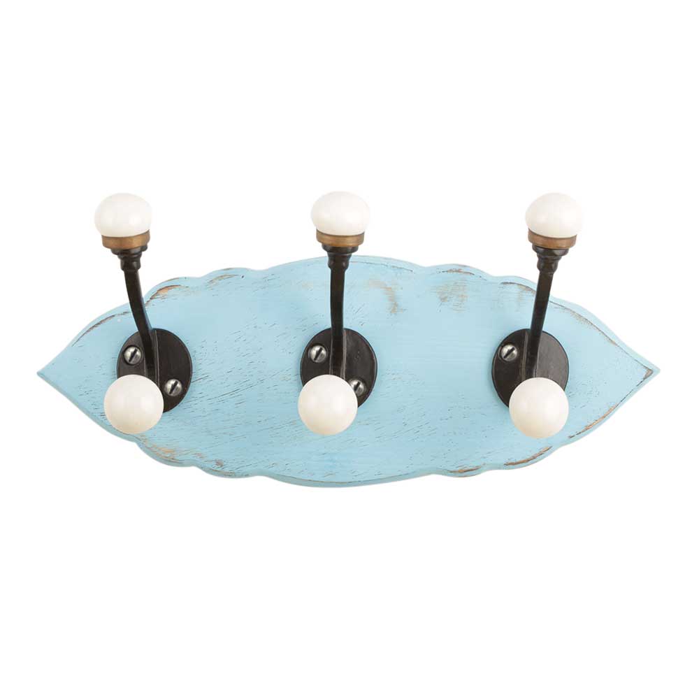 Turquoise Black Double Loop Ceramic Iron Wooden Hooks. A Perfect Complement to the Soft Tone of the Wood are these White Traditional Hat & Coat Hook Made of Genuine Porcelain and Brass. It can be use to Hang Jewellery, Leashes, Towels, Scarves, Light Weight Sweaters, Caps Etc.