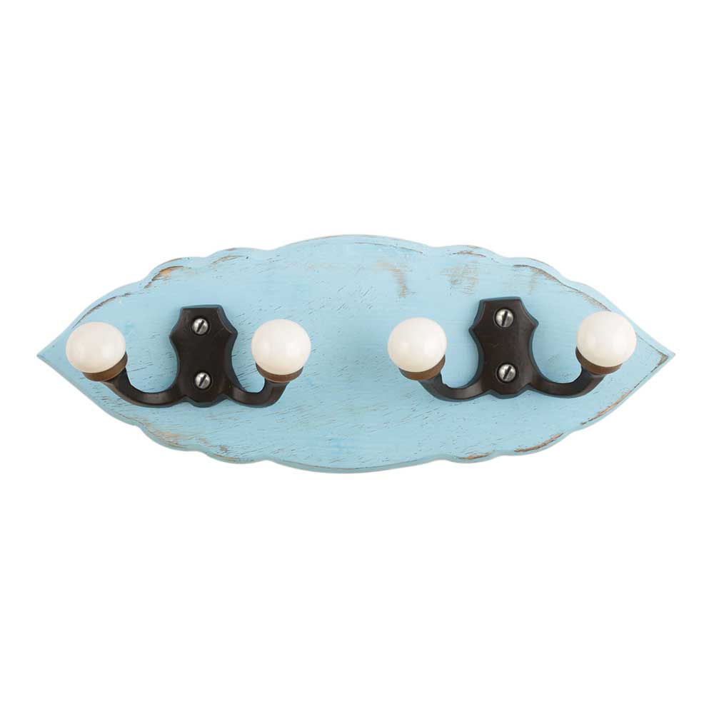Turquoise Black Double Loop Ceramic Iron Wooden Hooks. A Perfect Complement to the Soft Tone of the Wood are these White Traditional Hat & Coat Hook Made of Genuine Porcelain and Brass. It can be use to Hang Jewellery, Leashes, Towels, Scarves, Light Weight Sweaters, Caps Etc.