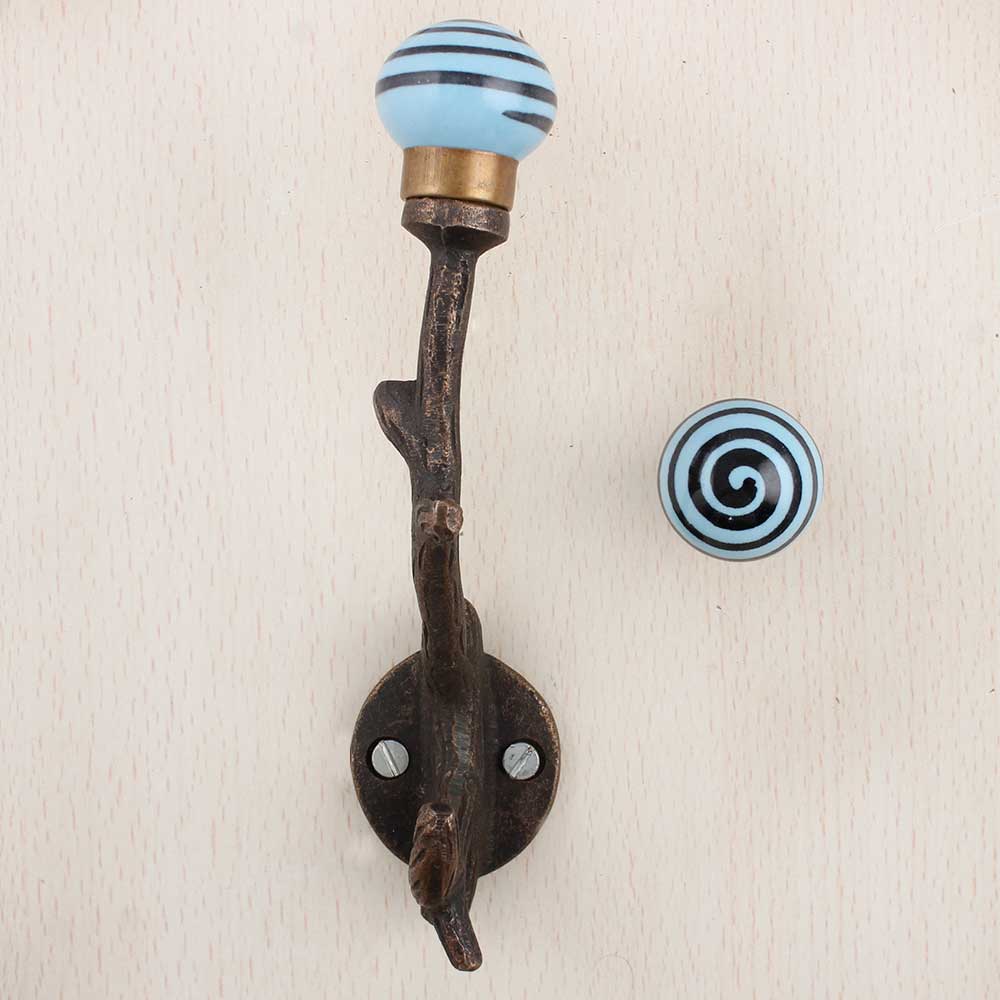 Turquoise Black Strip Tree Hook-Ehg-78. When Put on Wall or Cabinet It Gives A Sturdy Look. This Hook is Strong Enough to Hold Your Cloths, Keys, Tea Cups, Coffee Mugs, Hand Towels Etc.
