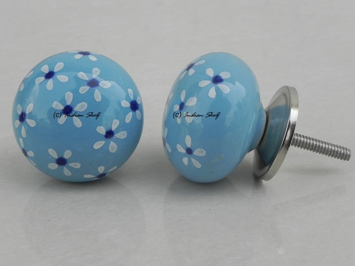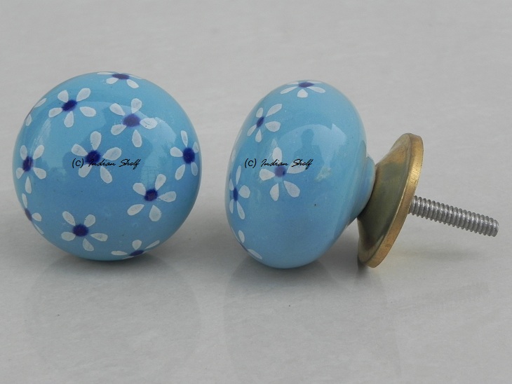 Turquoise Blue Flower Ceramic Knob. Ideal for kitchen cabinets, kitchen drawers, dining room, bed room, chest drawers, dressing tables, almirah