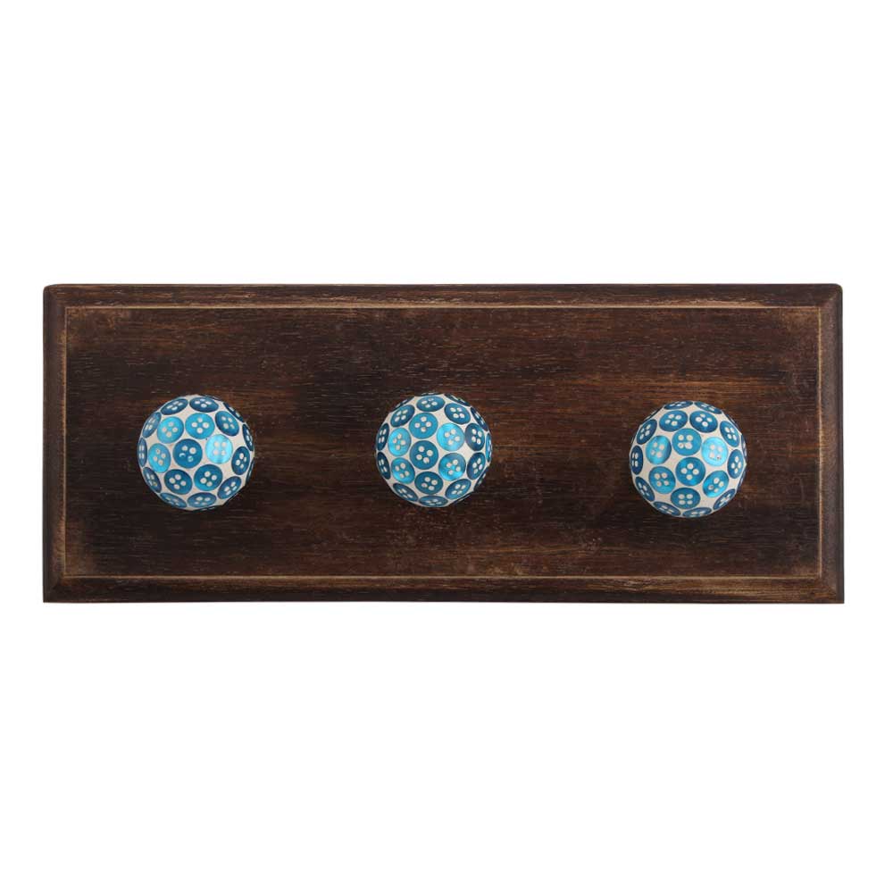 Turquoise Button Wooden Hook. A Perfect Complement to the Soft Tone of the Wood are these White Traditional Hat Coat Hook Made of Genuine Porcelain and Brass. It can be use to Hang Jewellery, Leashes, Towels, Scarves, Light Weight Sweaters, Caps Etc.
