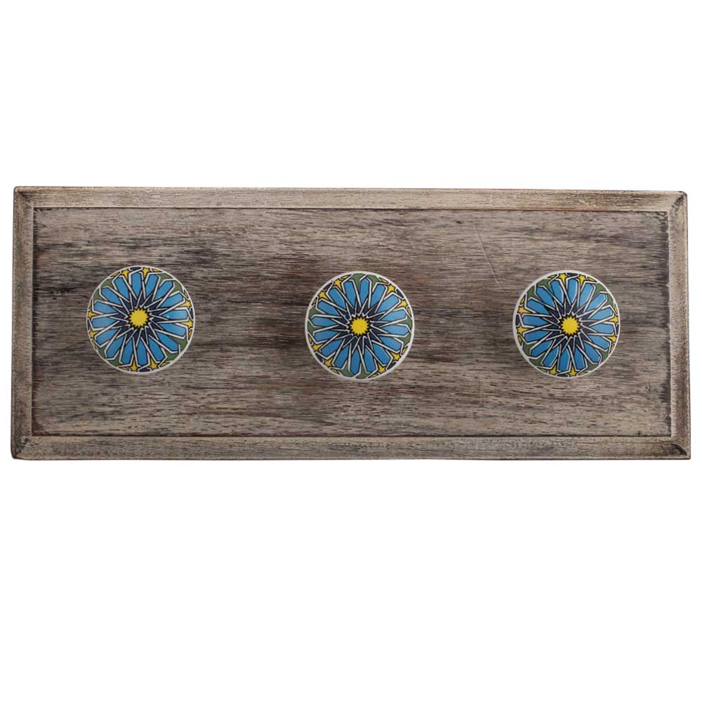 Turquoise Ceramic Flat Wooden Hook. A Perfect Complement to the Soft Tone of the Wood are these White Traditional Hat & Coat Hook Made of Genuine Porcelain and Brass. It can be use to Hang Jewellery, Leashes, Towels, Scarves, Light Weight Sweaters, Caps Etc.