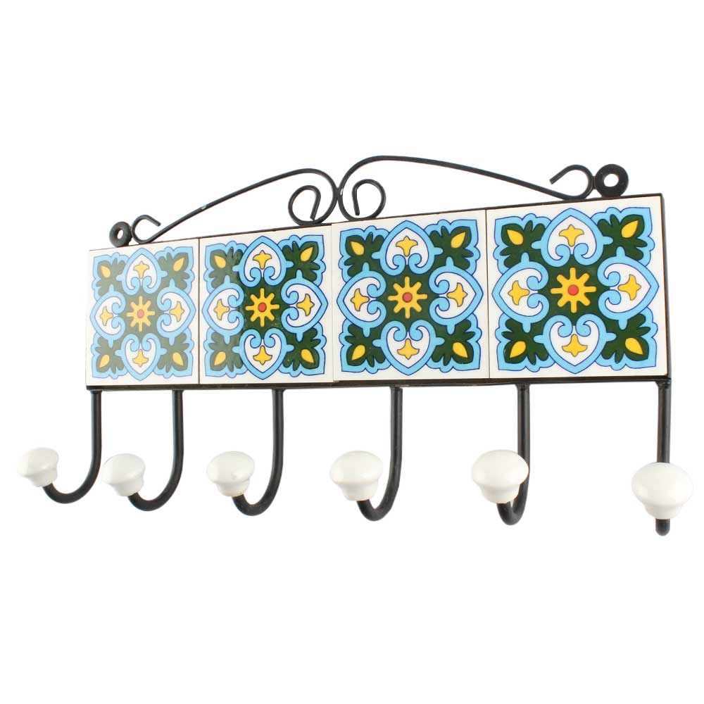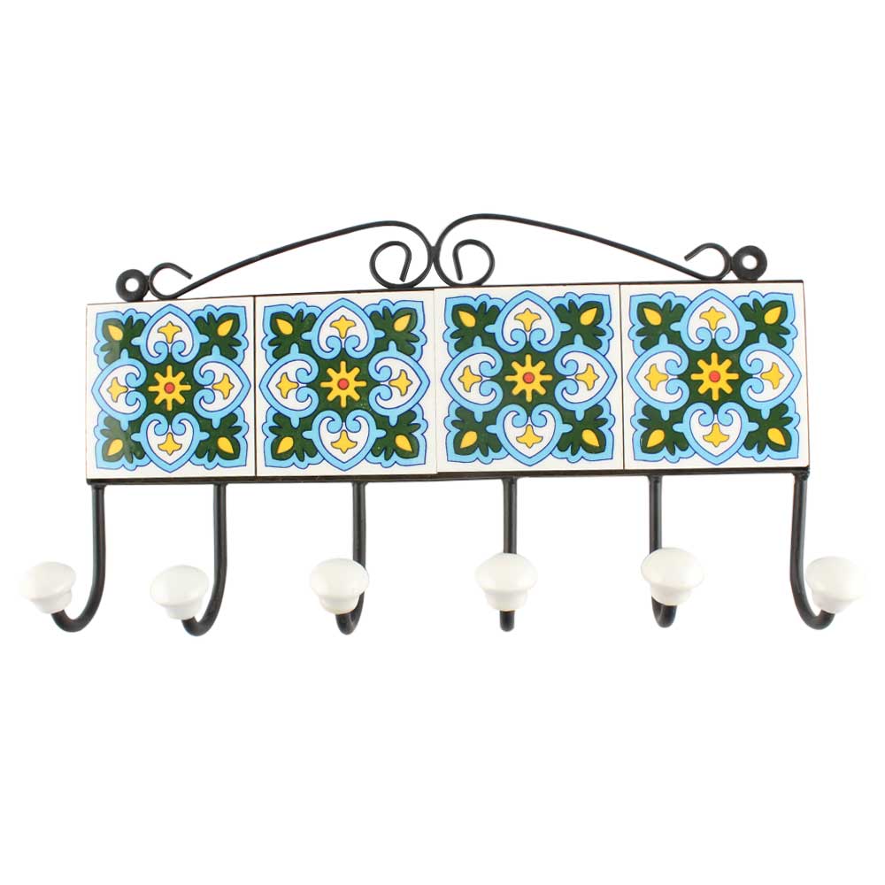 Turquoise Ceramic Flower Tile Wall Hook Online. When Put on Wall or Cabinet It is An Art in Itself. The Metal Part of this Hook is Black Powder Coated.