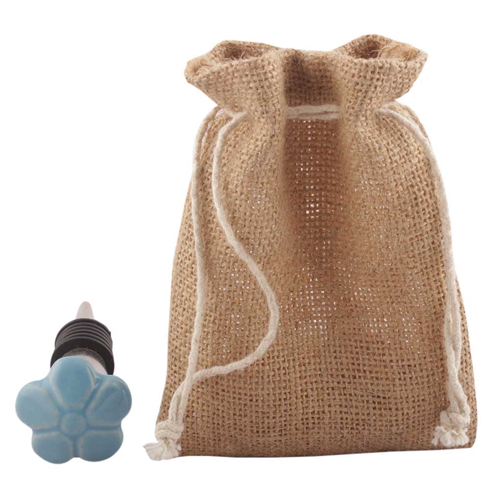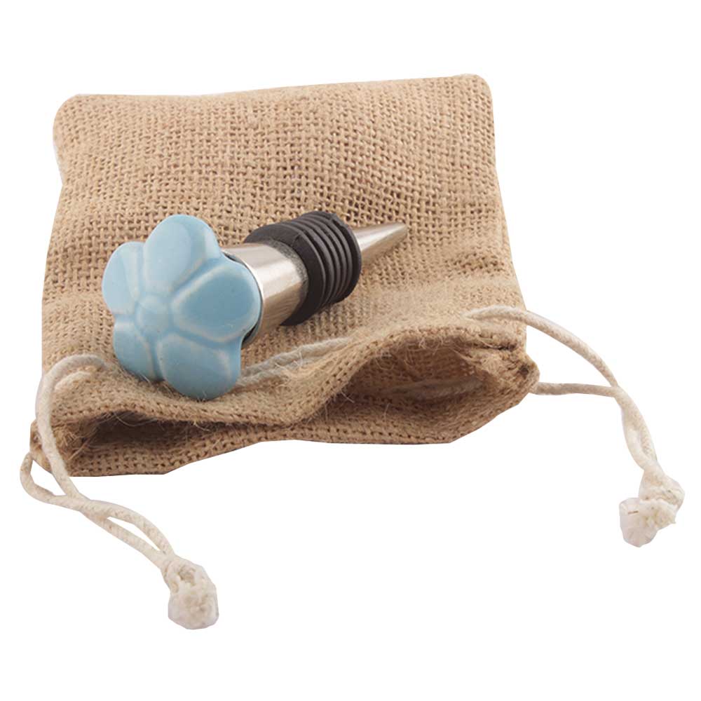 Turquoise Ceramic Flower Wine Stopper. Zinc Alloy Wine Bottle Stopper with Attractive Jute Bag Packaging.