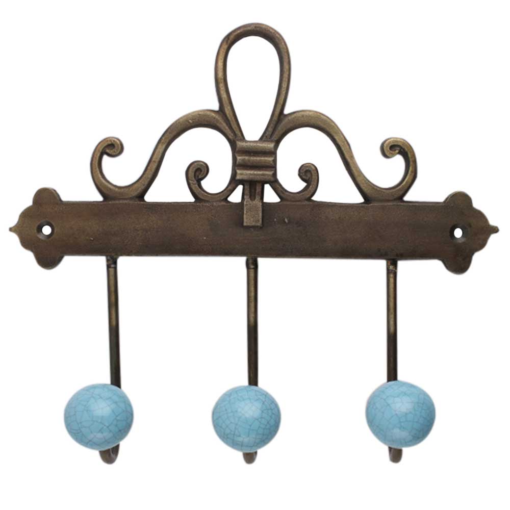 Turquoise Crackle Ceramic Iron Hook. A Perfect Complement to the Soft Tone of the Wood are these White Traditional Hat & Coat Hook Made of Genuine Porcelain and Brass. It can be use to Hang Jewellery, Leashes, Towels, Scarves, Light Weight Sweaters, Caps Etc.
