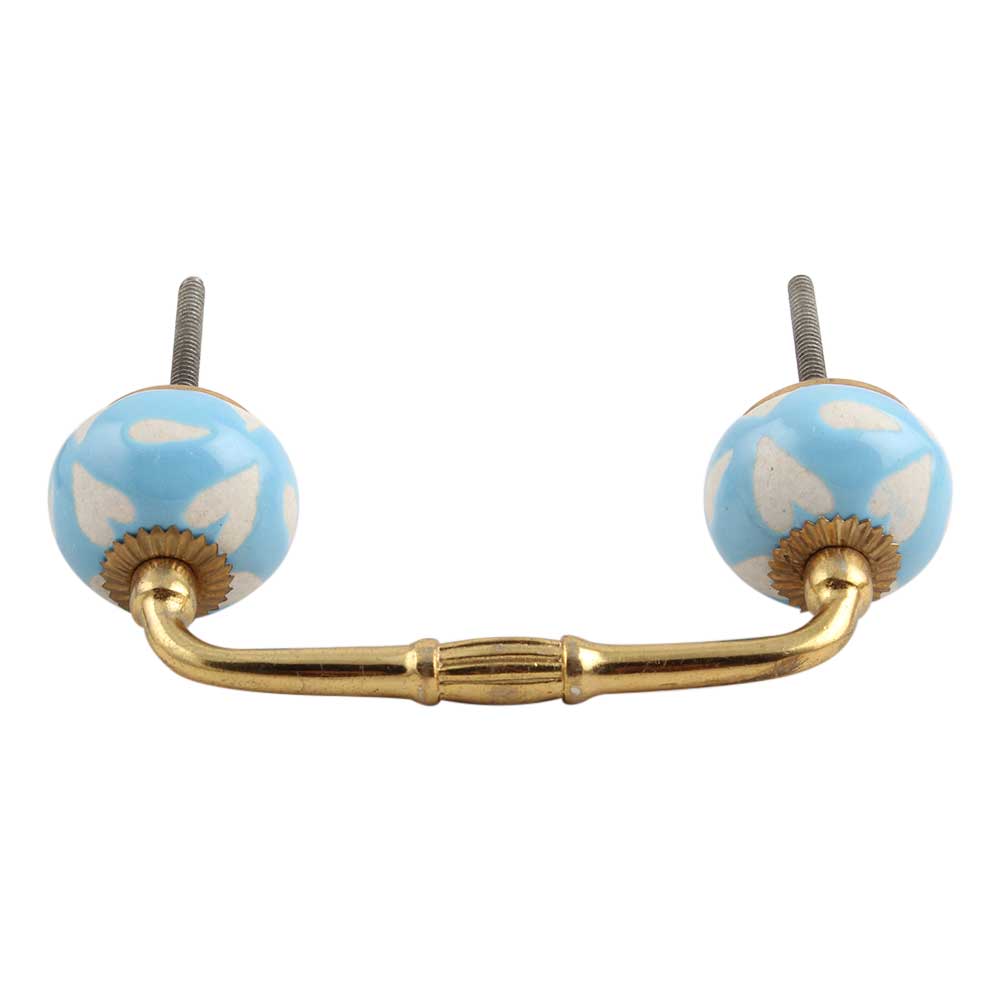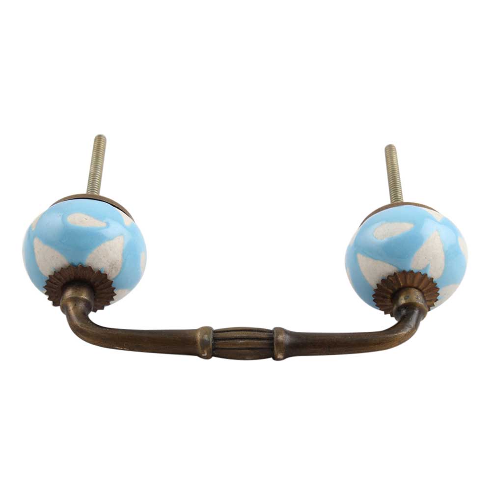 Turquoise Etched Ceramic Bridge Handle. Ideal for Drawer, Dresser, Cabinet, Wardrobe, Cupboard and Almirah.