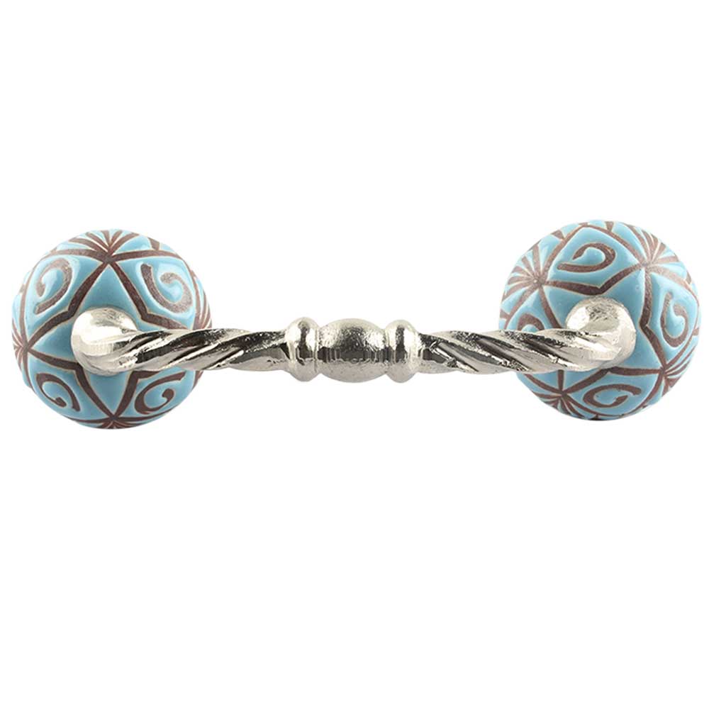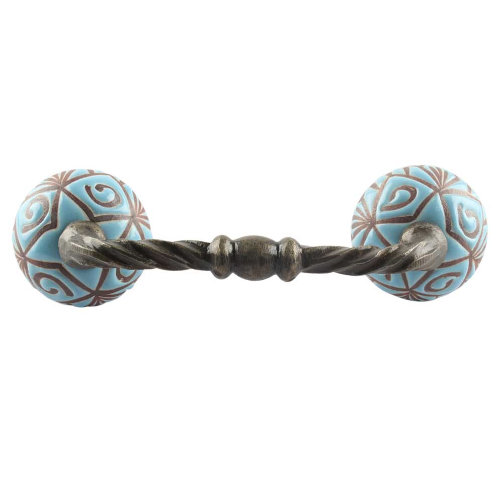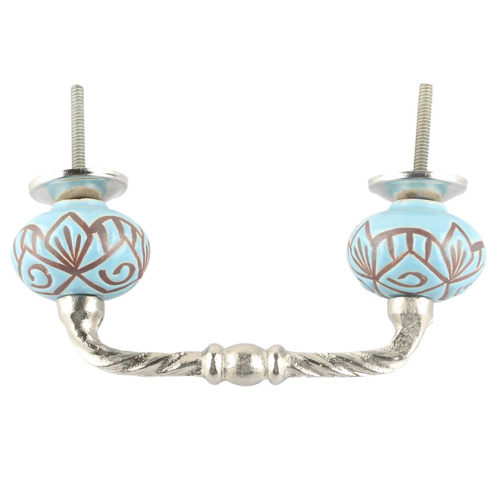 Turquoise Etched Ceramic Cut Bridge Handle Online. Ideal for Drawer, Dresser, Cabinet, Wardrobe, Cupboard and Almirah etc.
