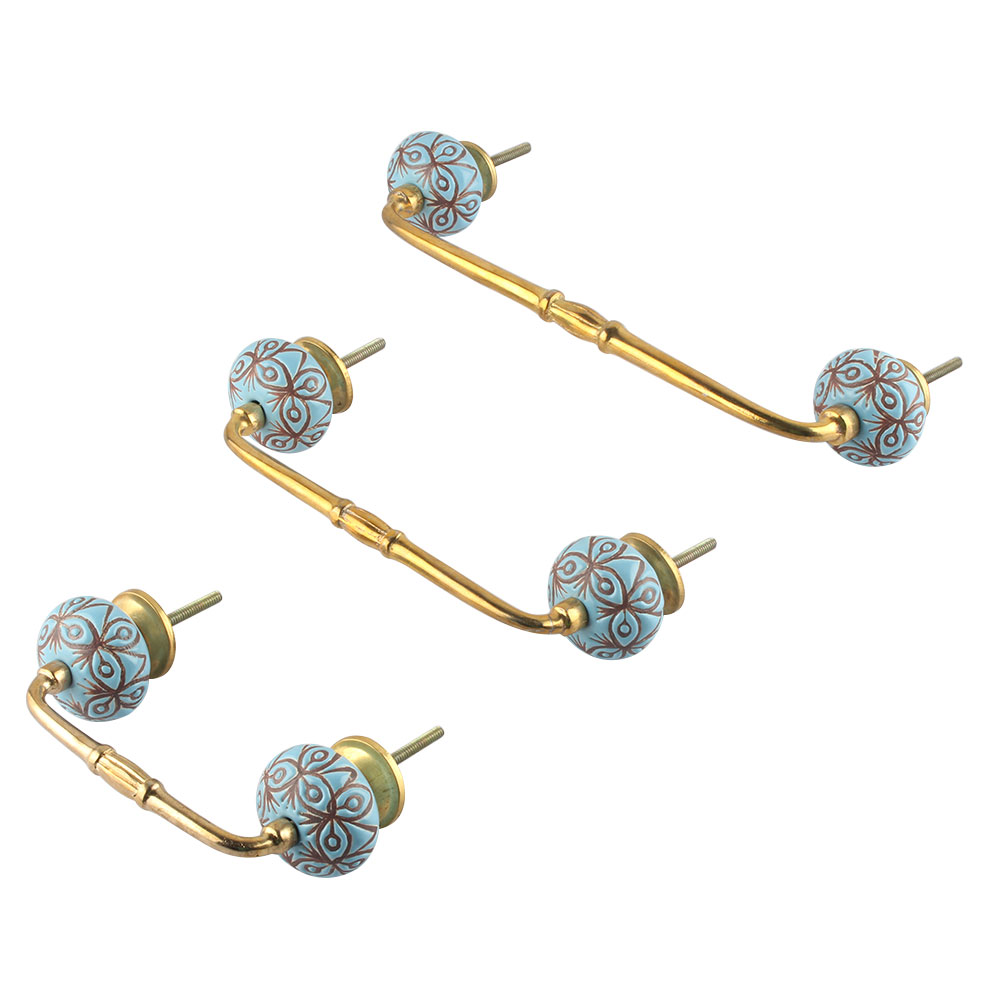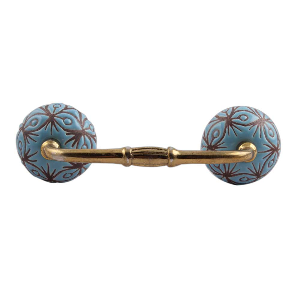 Turquoise Etched Ceramic Floral Bridge Handle. Ideal for Drawer, Dresser, Cabinet, Wardrobe, Cupboard and Almirah.