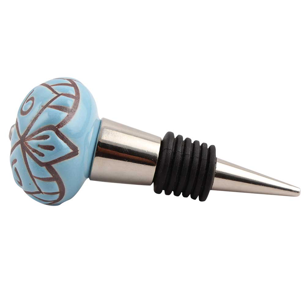 Turquoise Etched Ceramic Floral Wine Stopper.zinc alloy wine bottle stopper with attractive Jute Bag Packaging.