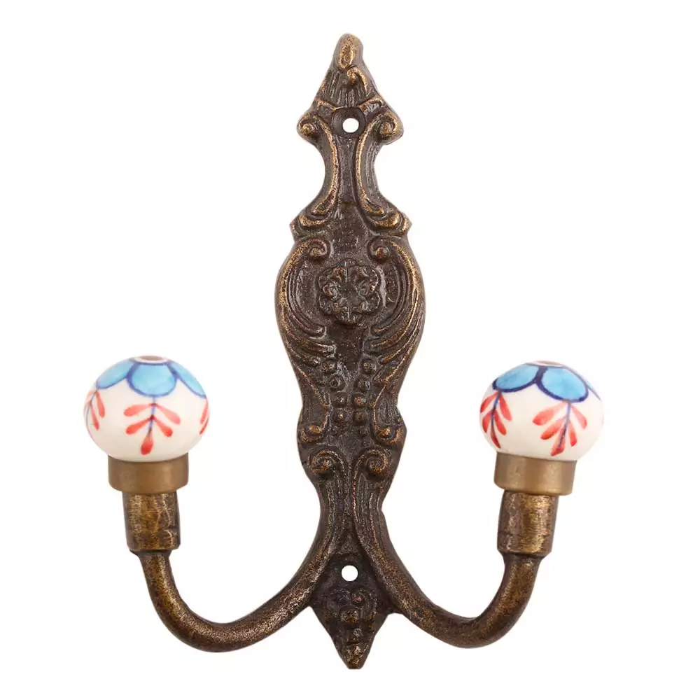 Turquoise Floral Ceramic Iron Hook. When Put on Wall or Cabinet It Gives A Sturdy Look. This Hook is Strong Enough to Hold Your Cloths, Keys, Tea Cups, Coffee Mugs, Hand Towels Etc