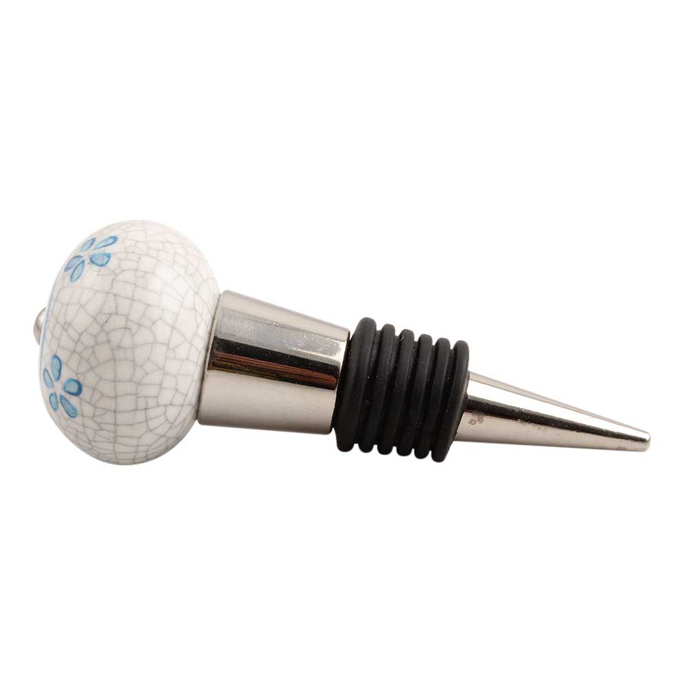 Turquoise Floral Crackle Ceramic Wine Stopper
