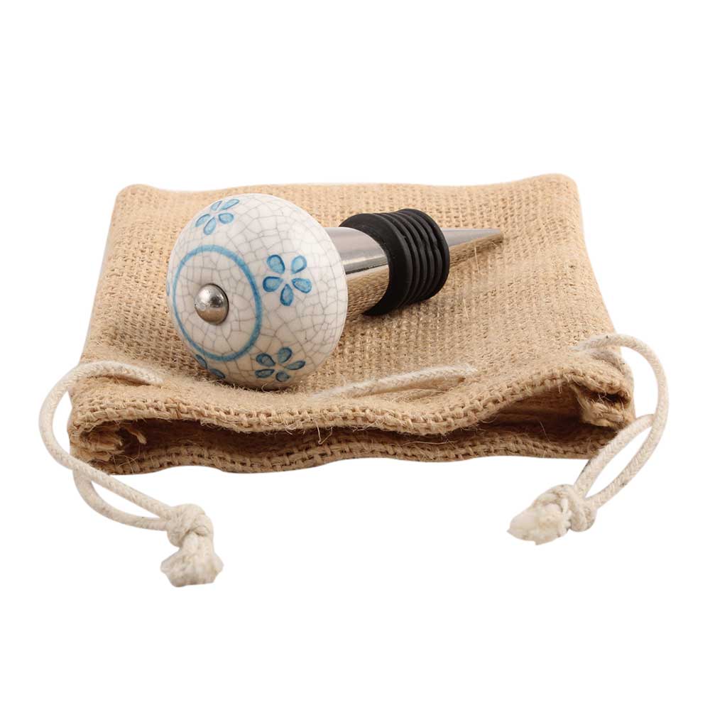 Turquoise Floral Crackle Ceramic Wine Stopper.Zinc Alloy Wine Bottle Stopper with Attractive Jute Bag Packaging.