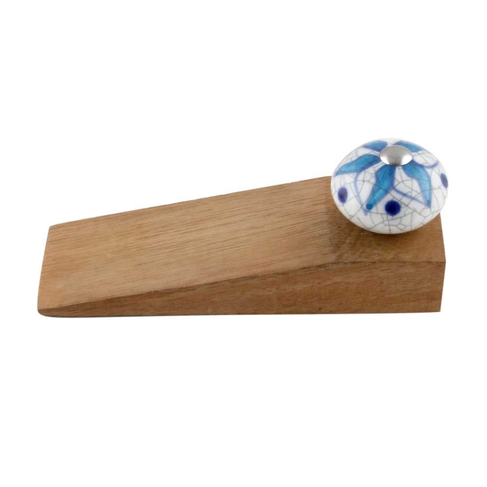 Maintaining the Turquoise Floral Crackle Ceramic Wooden Door Stopper is effortless. A quick wipe with a damp cloth is enough to keep the ceramic surface looking pristine. The wooden base, with its natural grain, adds a rustic touch and is easy to care for as well.