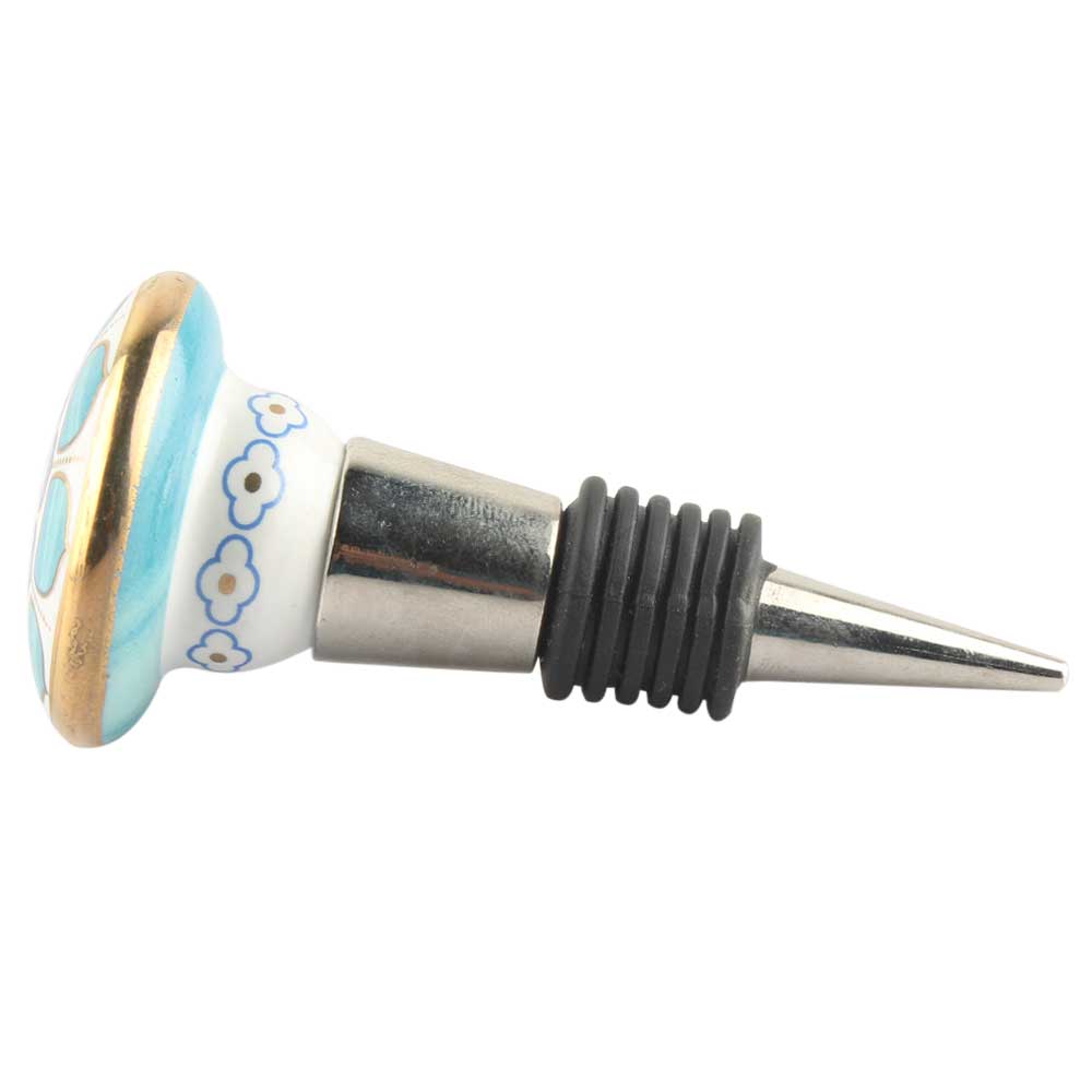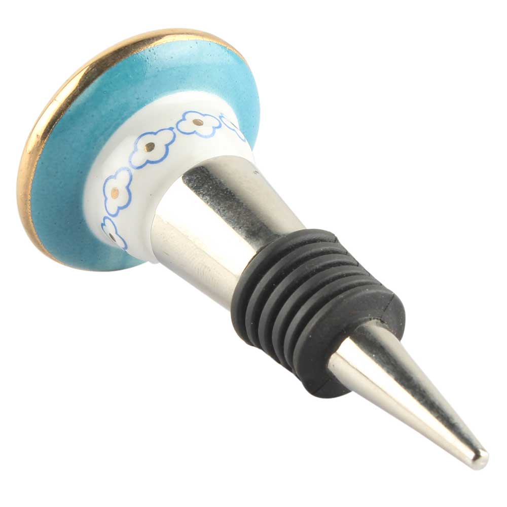 Turquoise Flower Ceramic Wine Stopper. Zinc Alloy Wine Bottle Stopper with Attractive Jute Bag Packaging.
