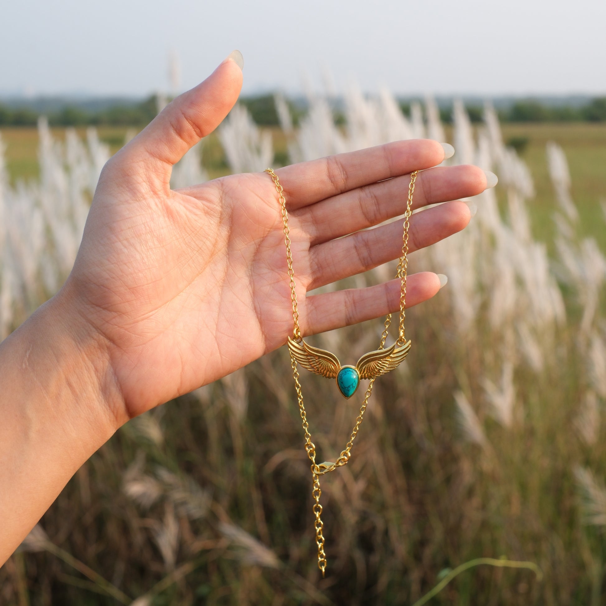 Store separately and wipe gently after wearing to keep the gold plating bright and the turquoise stone vivid.