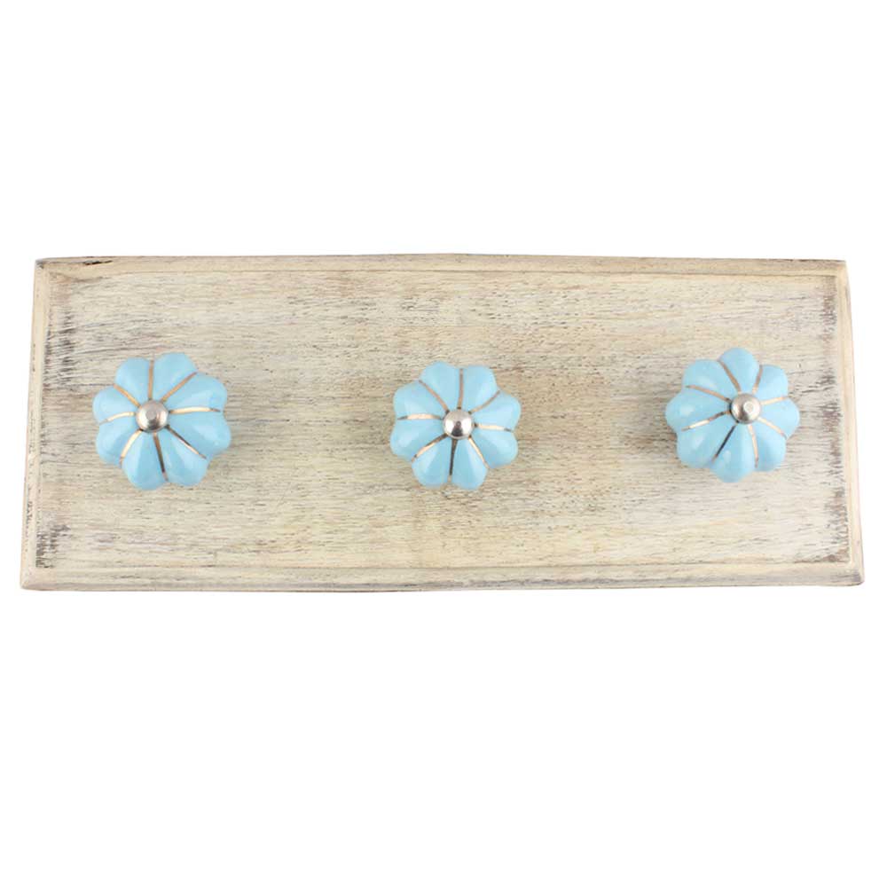 Turquoise Golden Line Medium Ceramic Melon Wooden Hooks. A Perfect Complement to the Soft Tone of the Wood are these White Traditional Hat and Coat Hook Made of Genuine Porcelain and Brass. It can be used to Hang Jewelry, Leashes, Towels, Scarves, Light Weight Sweaters, Caps etc.