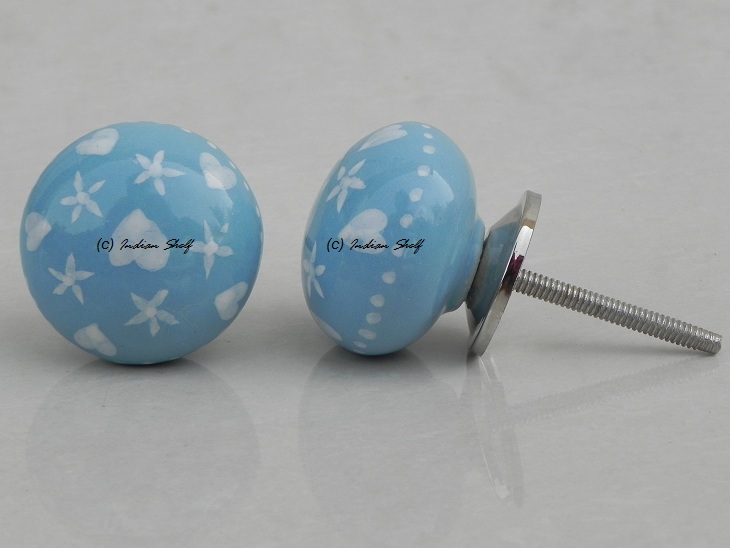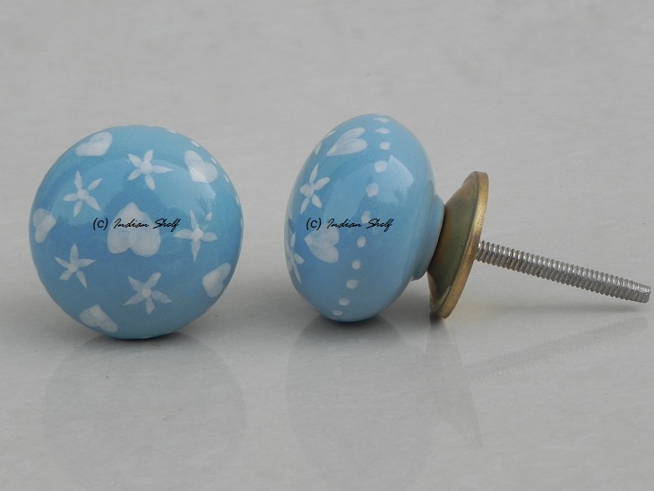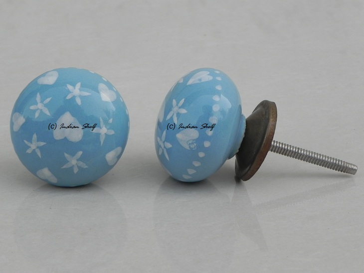 Turquoise Heart Flat Ceramic Knob. Ideal for kitchen cabinets, kitchen drawers, dining room, bed room, chest drawers, dressing tables, almirah