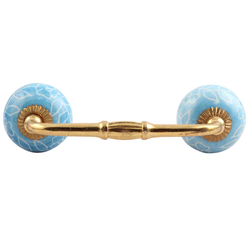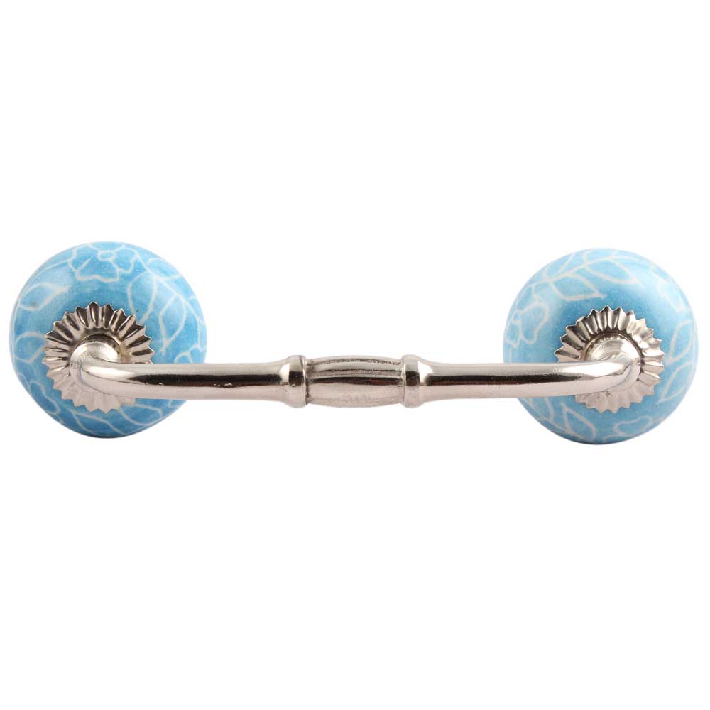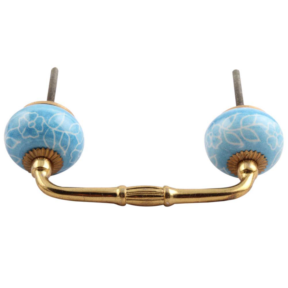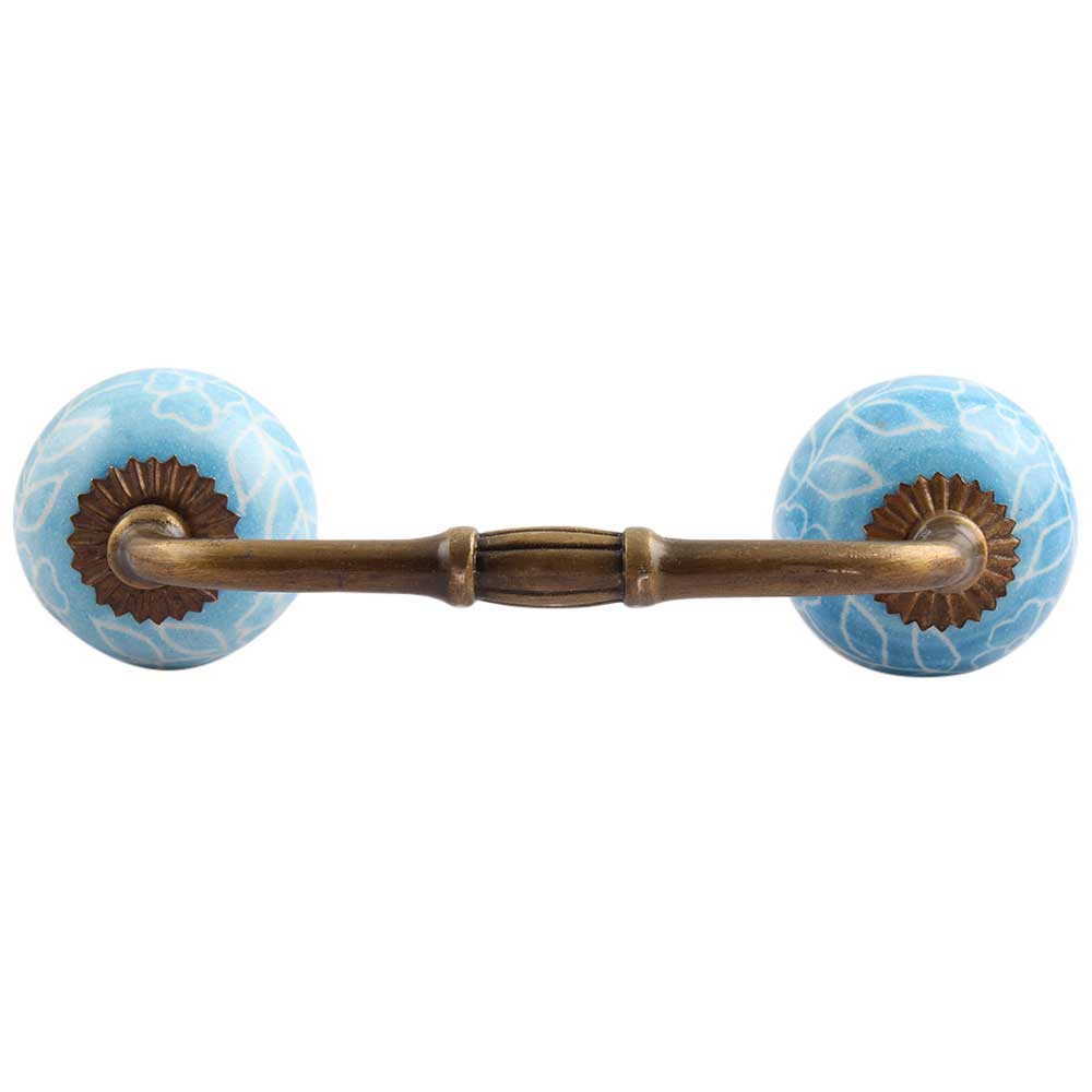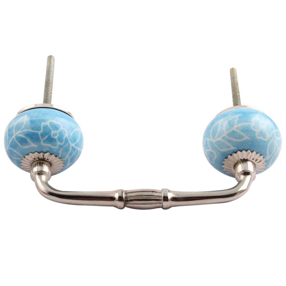 Turquoise Leaf Floral Ceramic Bridge Handle. Ideal for Drawer, Dresser, Cabinet, Wardrobe, Cupboard and Almirah.