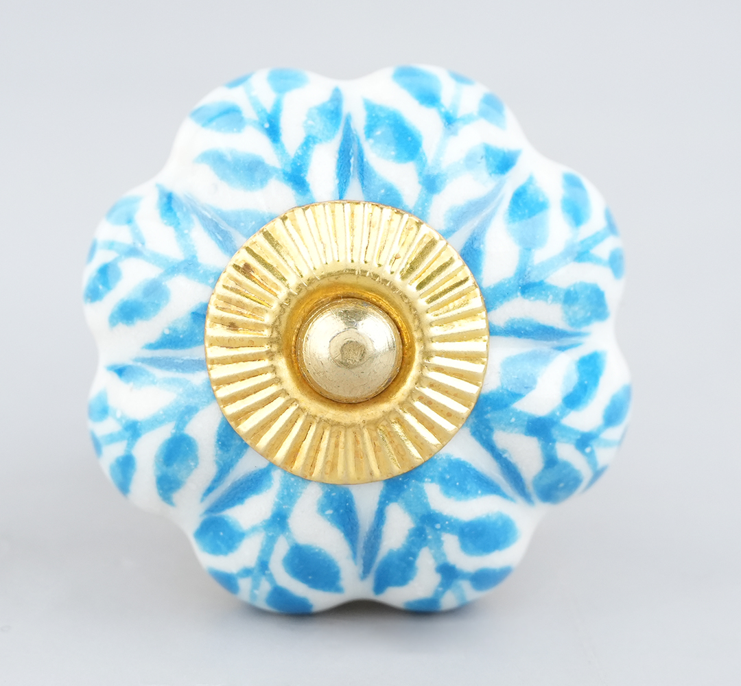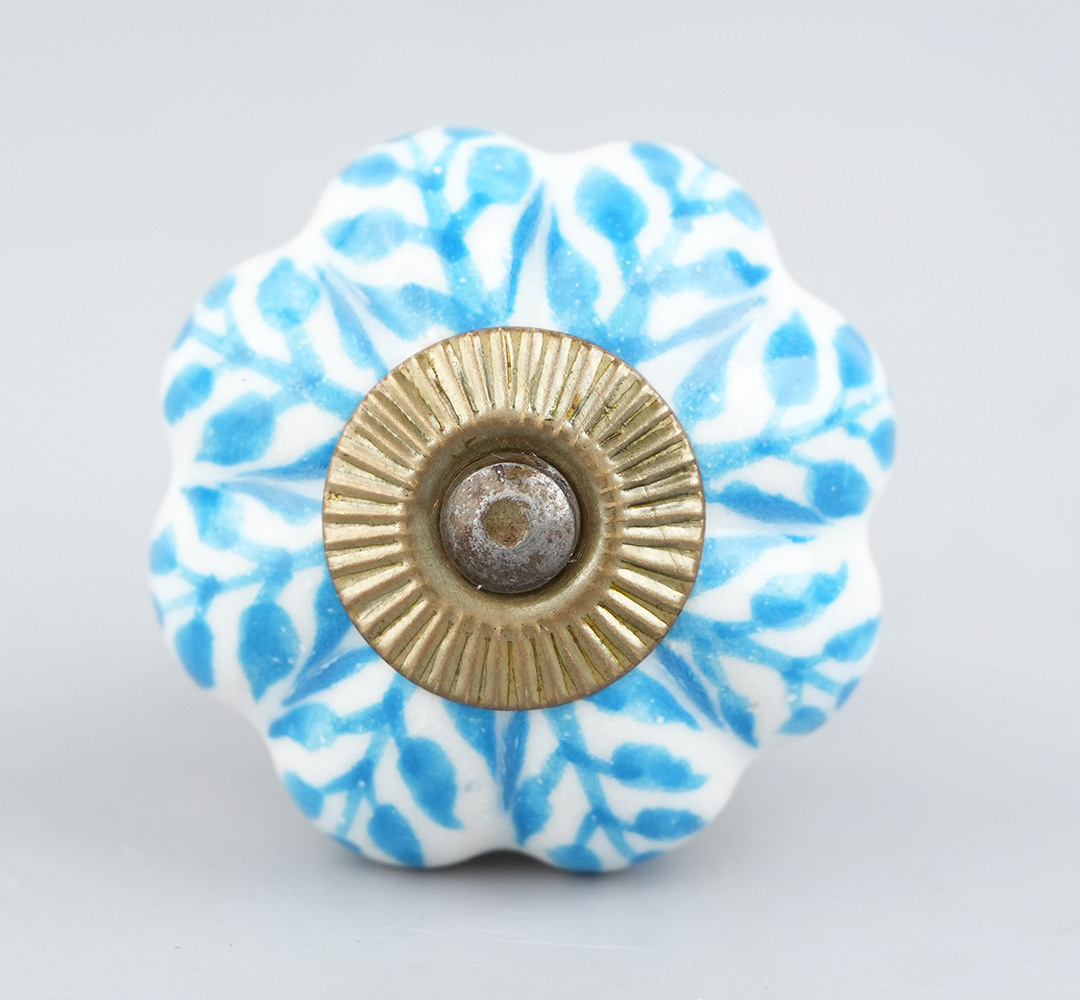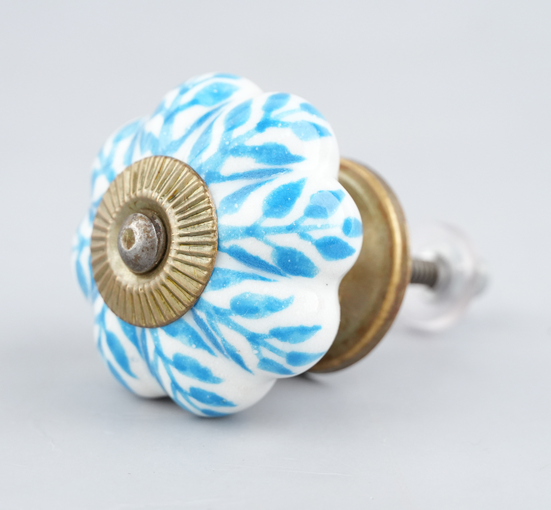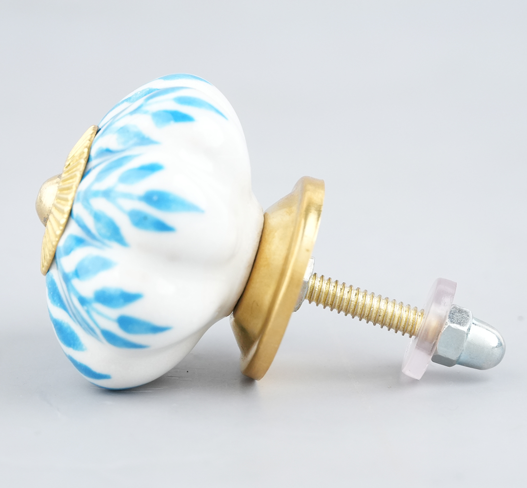 Turquoise Leaf Medium Melon Ceramic knob. Ideal for kitchen cabinets, kitchen drawers, dining room, bed room, chest drawers, dressing tables, almirah