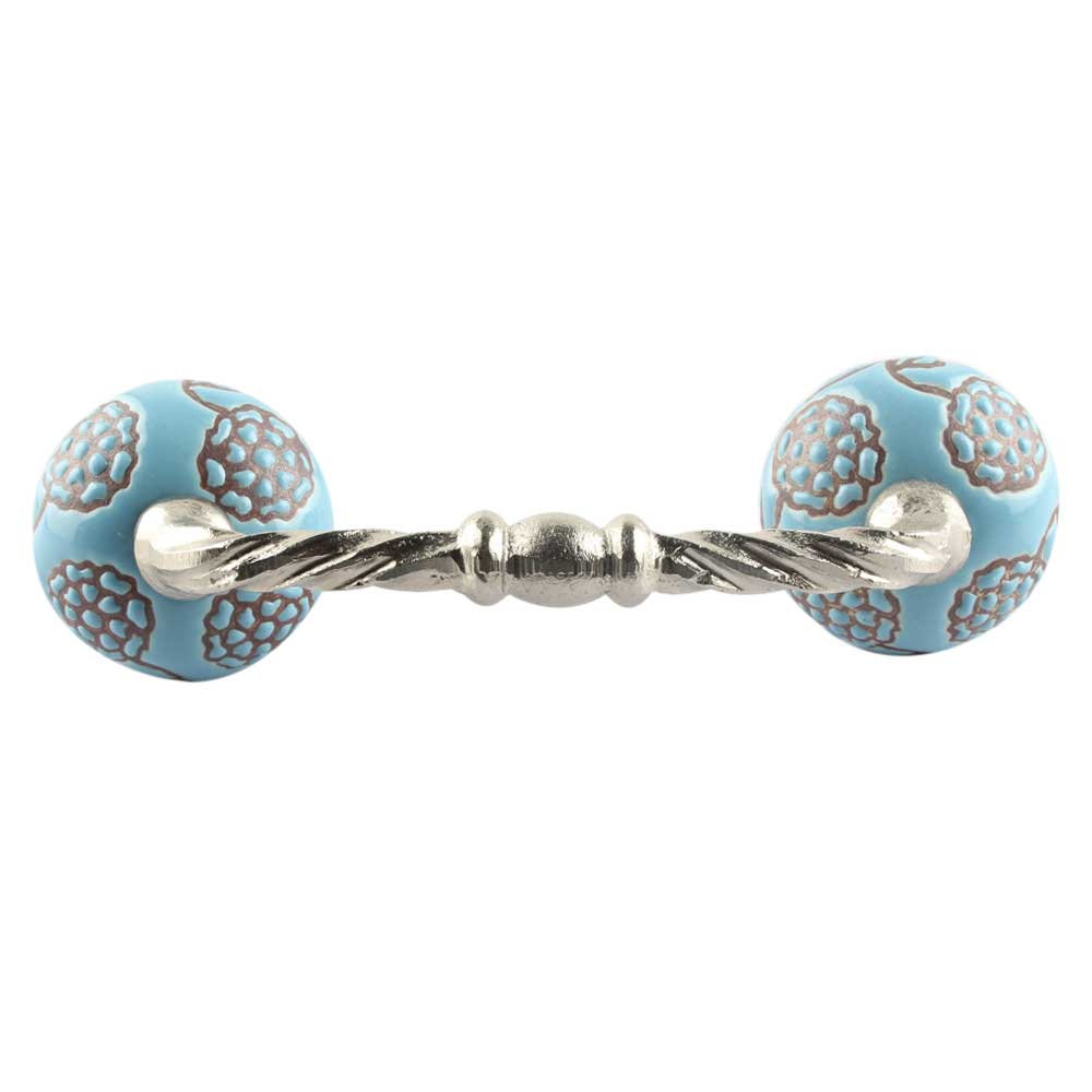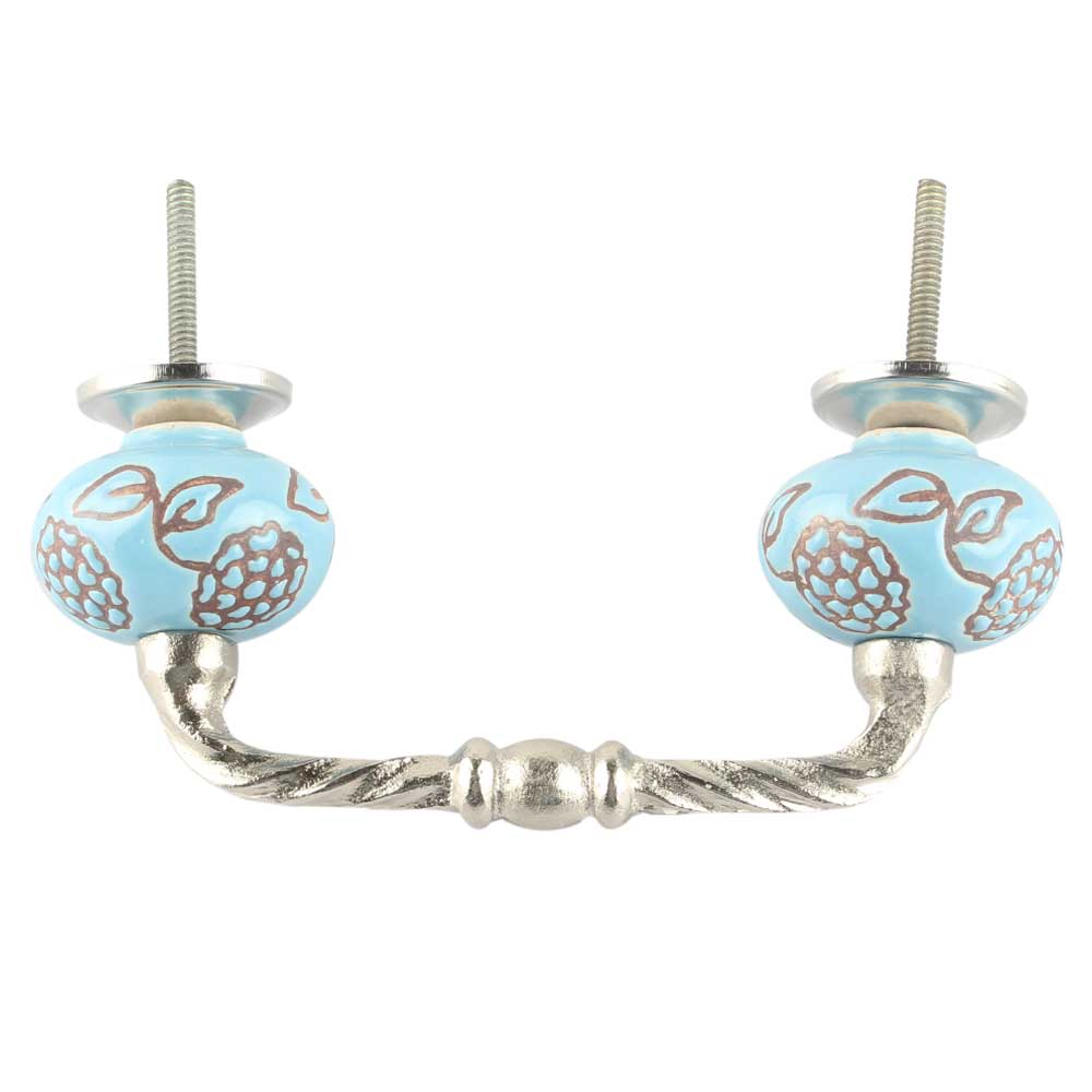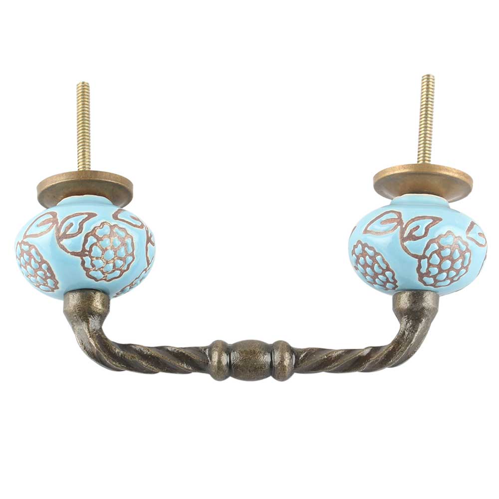 Turquoise Marigold Etched Ceramic Cut Bridge Handle Online. Ideal for Drawer, Dresser, Cabinet, Wardrobe, Cupboard and Almirah etc.