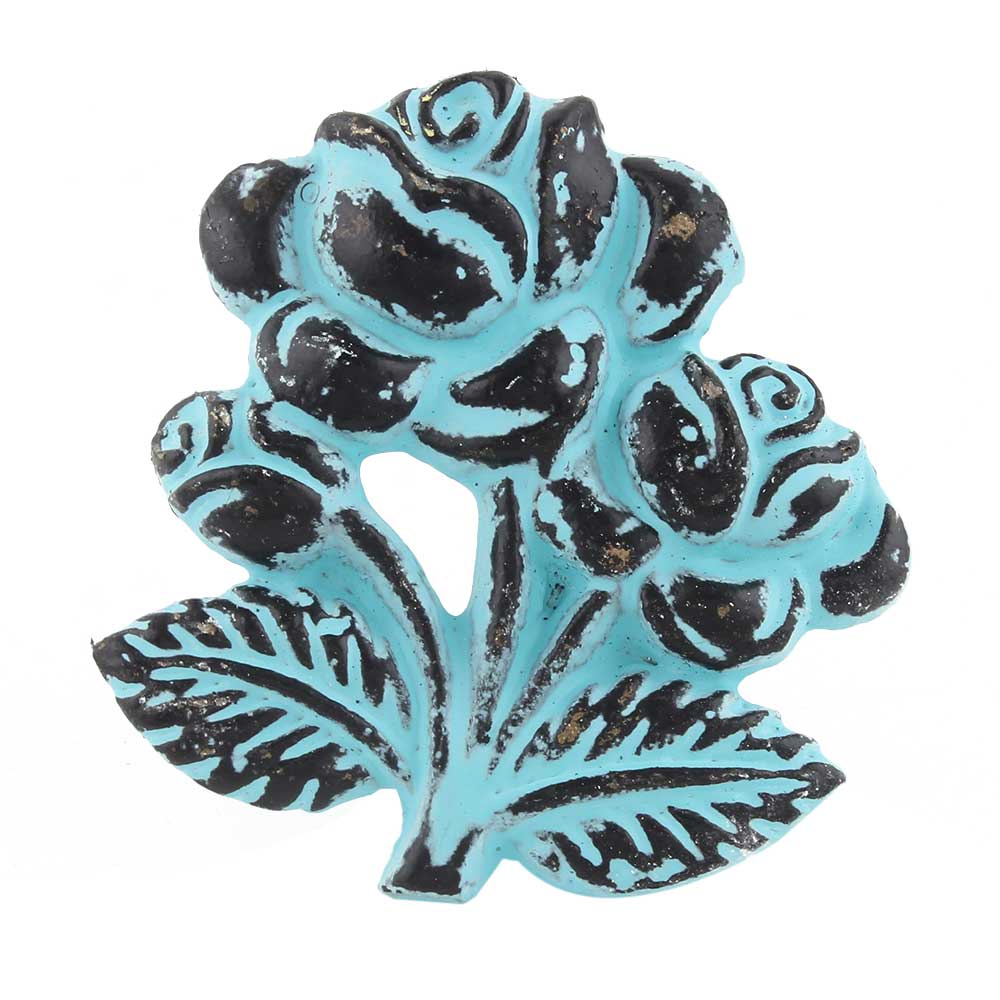 Turquoise Rose with Branch Distressed Iron Dresser Knob
