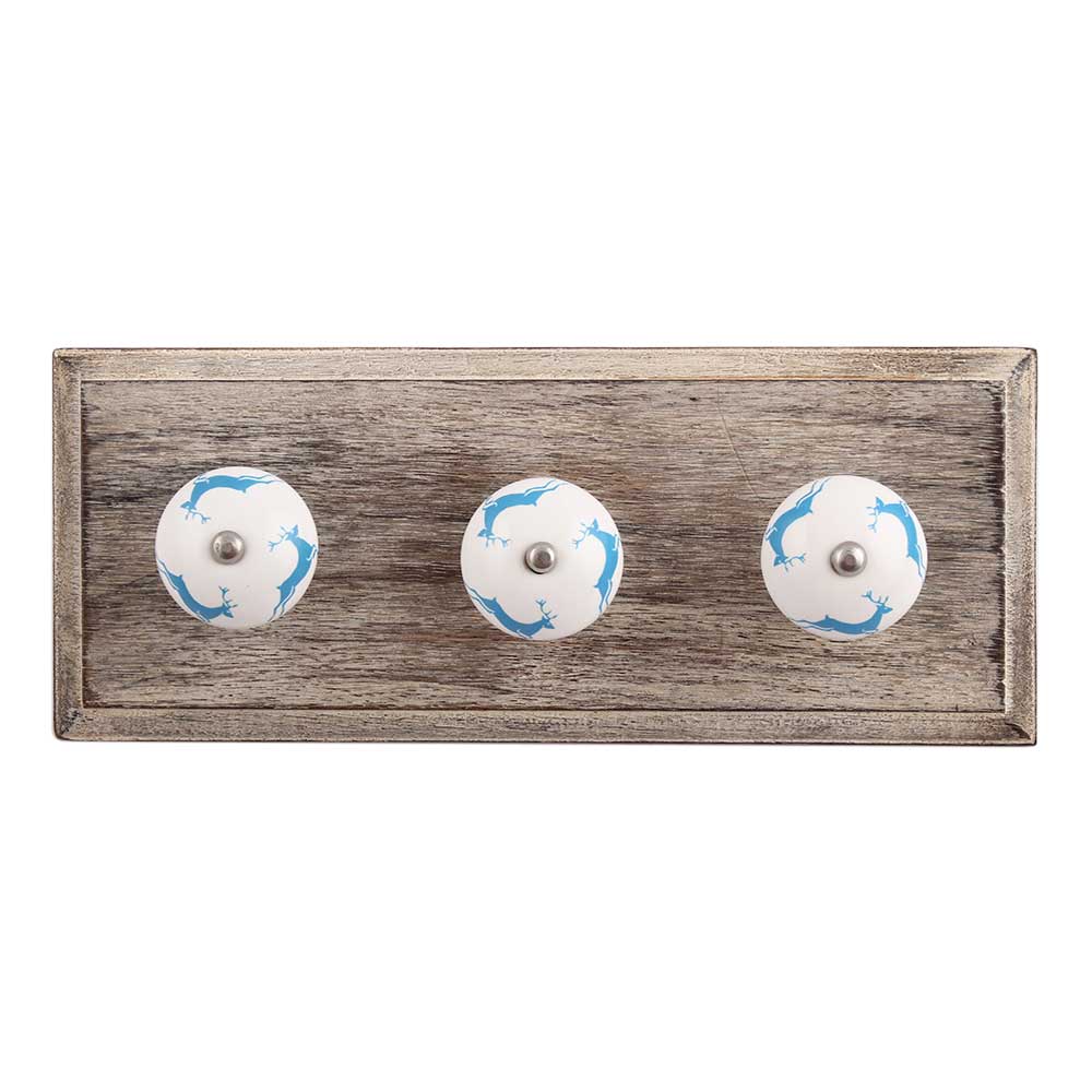 Turquoise Running Rein Deer Pattern Ceramic Wooden Hook. A Perfect Complement to the Soft Tone of the Wood are these White Traditional Hat & Coat Hook Made of Genuine Porcelain and Brass. It can be use to Hang Jewellery, Leashes, Towels, Scarves, Light Weight Sweaters, Caps Etc.