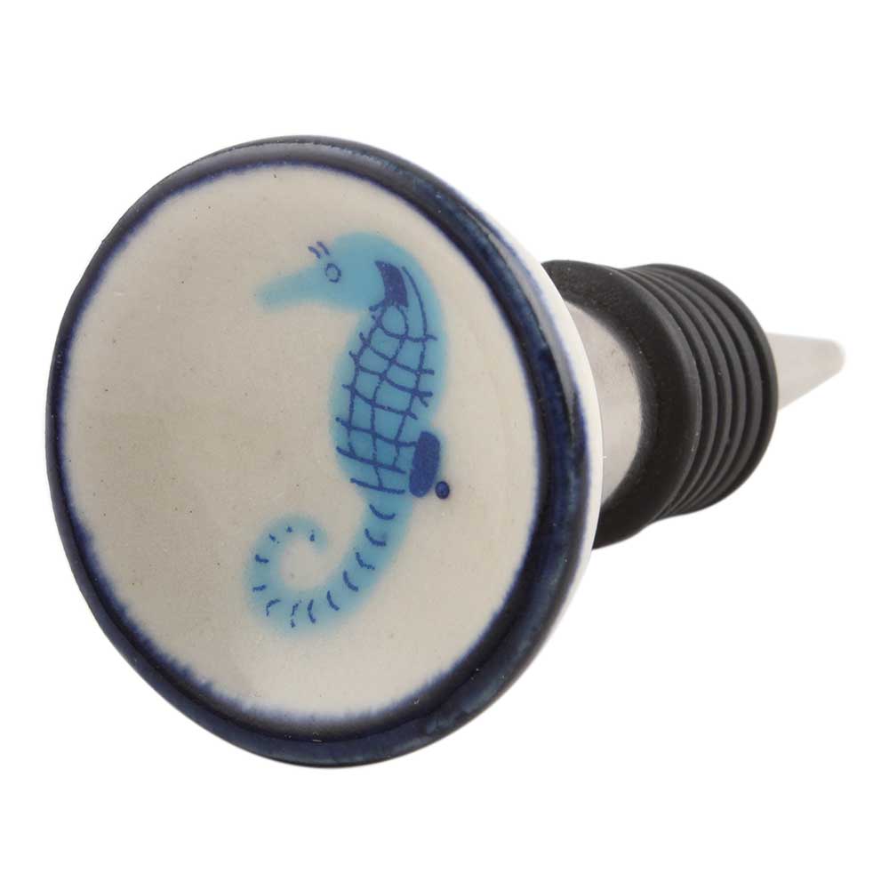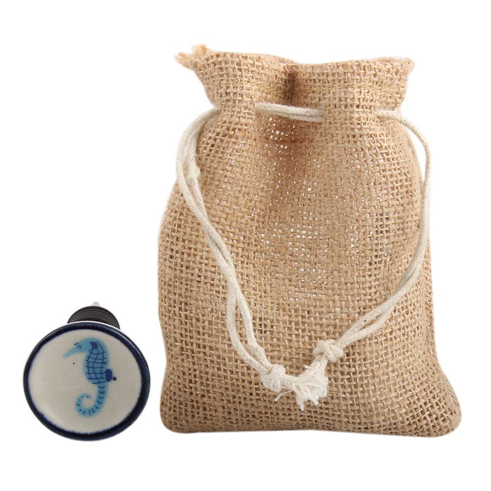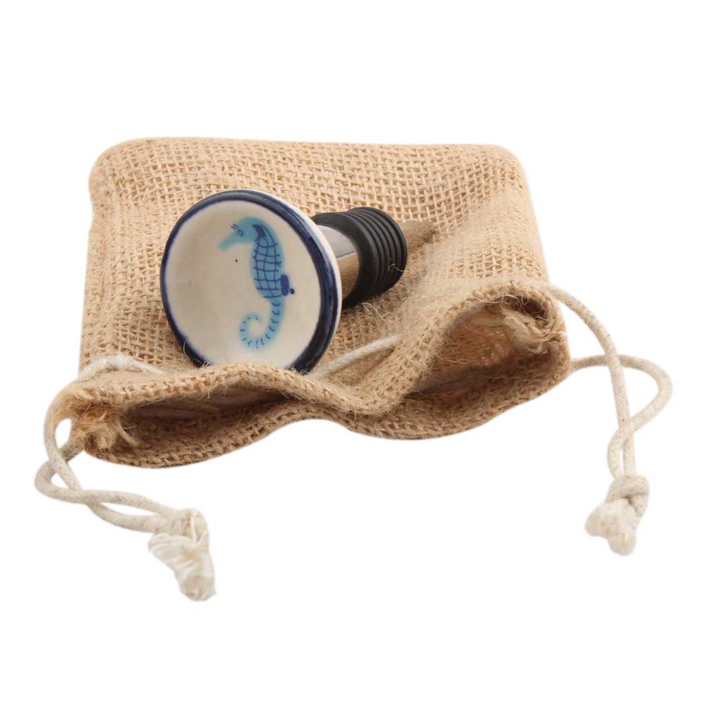 Turquoise Seahorse Flat Ceramic Wine Stopper.zinc alloy wine bottle stopper with attractive Jute Bag Packaging.