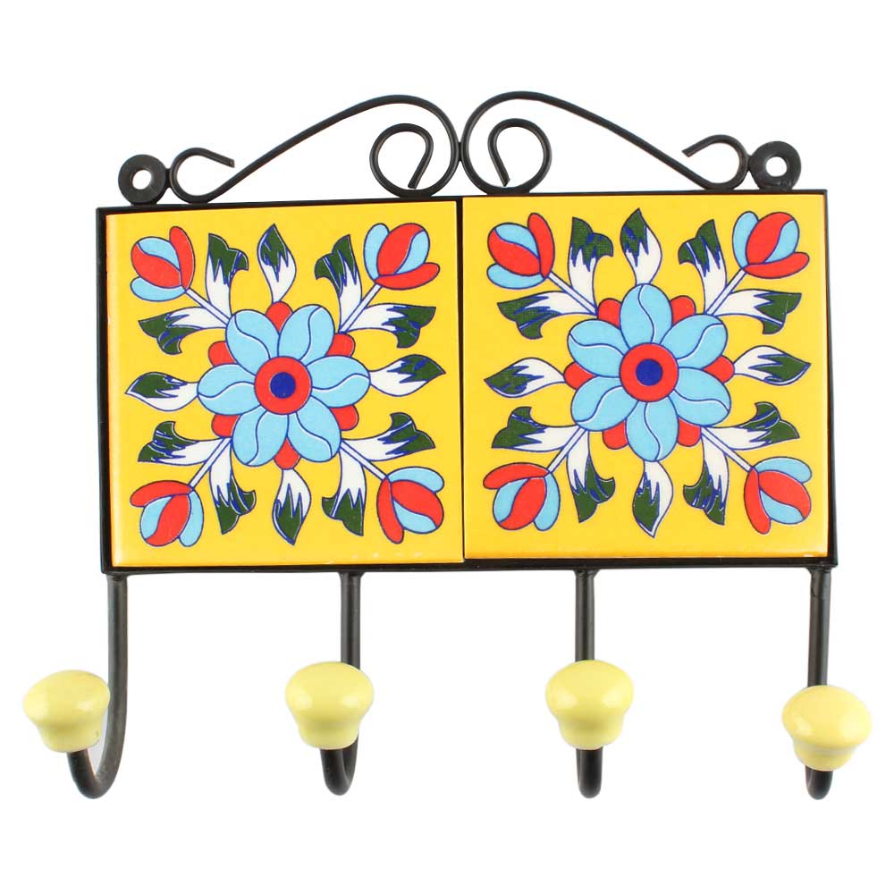 Turquoise Sunflower Ceramic Tiles Hook. When Put on Wall or Cabinet It is An Art in Itself. The Metal Part of this Hook is Black Powder Coated.