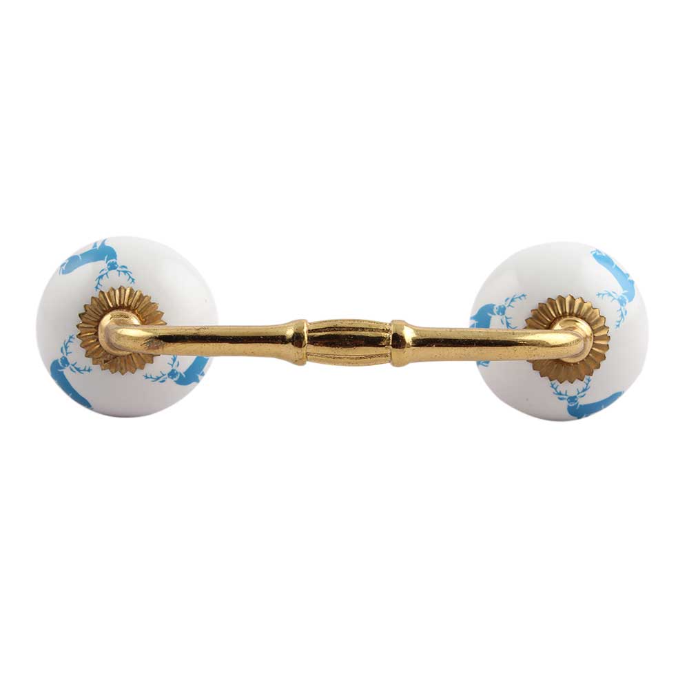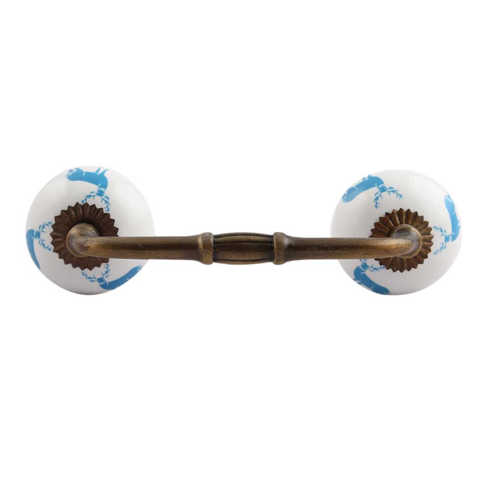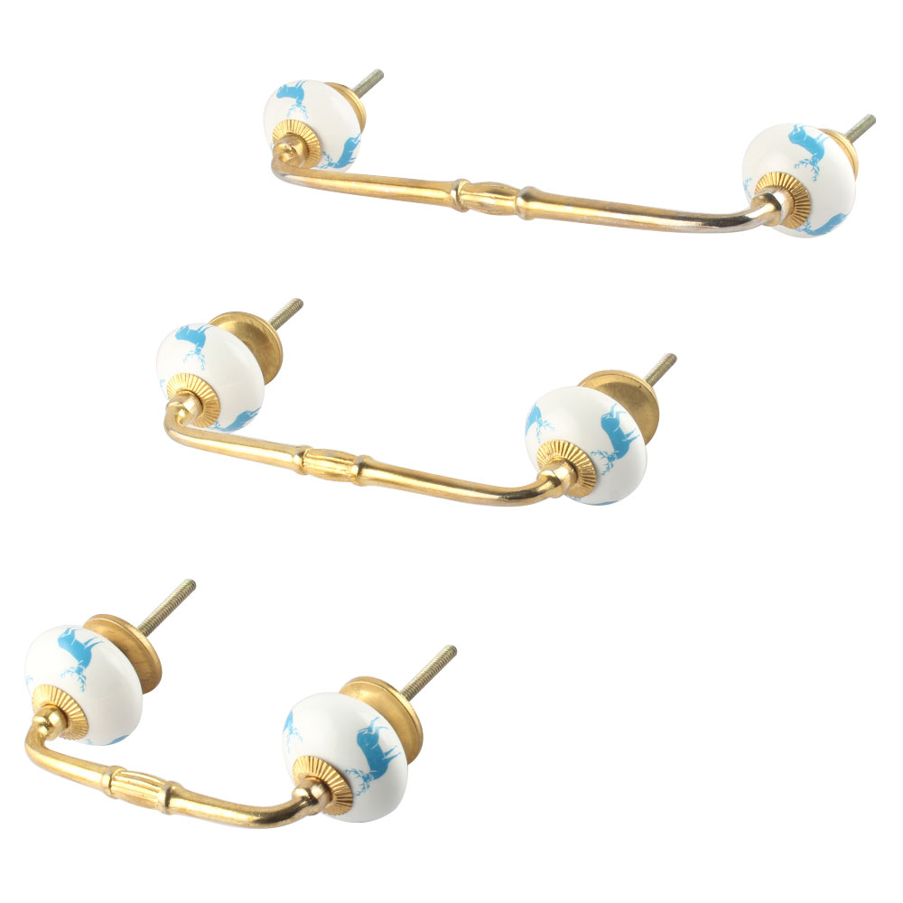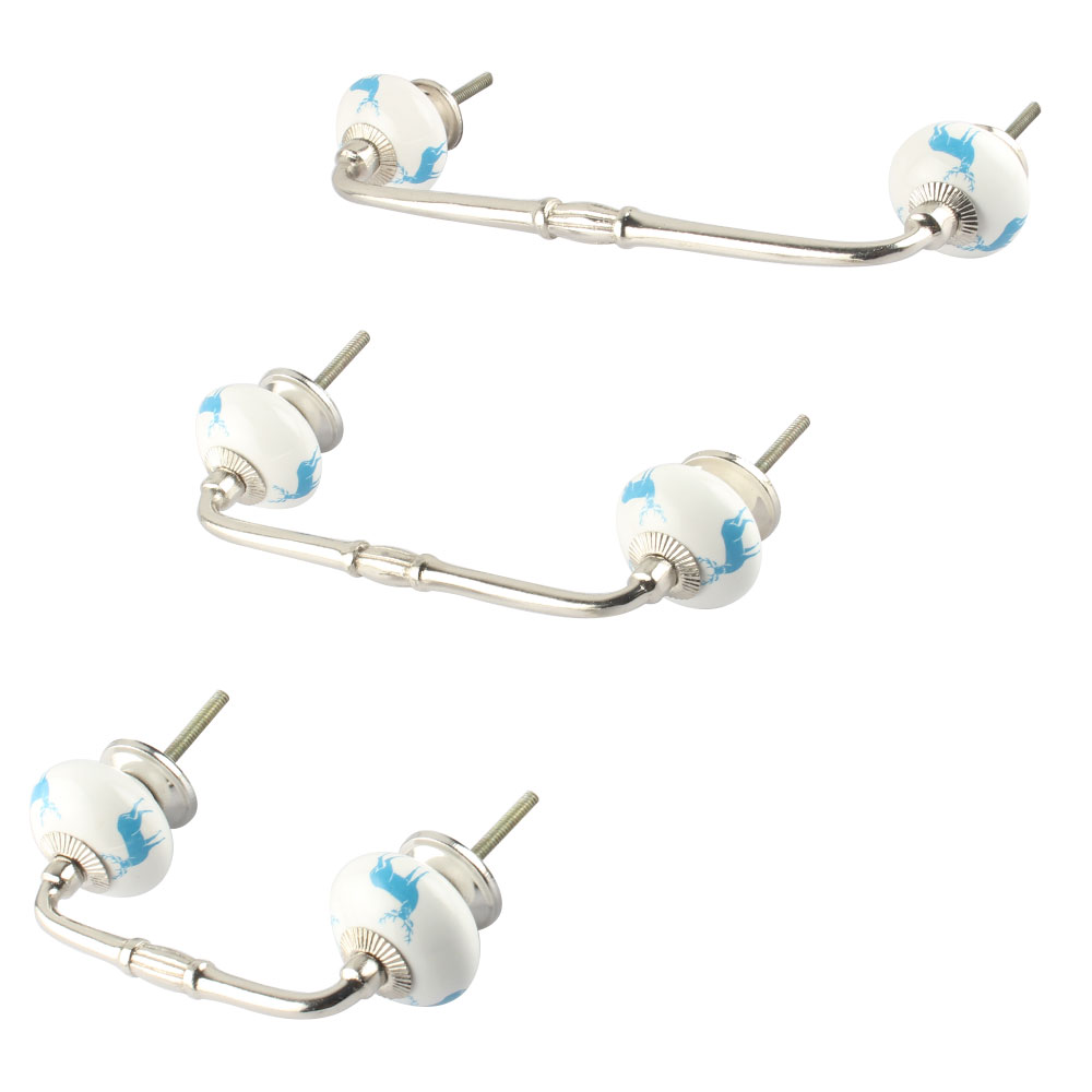 Turquoise Standing Rein Deer Pattern Ceramic Bridge Handle. Ideal for Drawer, Dresser, Cabinet, Wardrobe, Cupboard and Almirah.