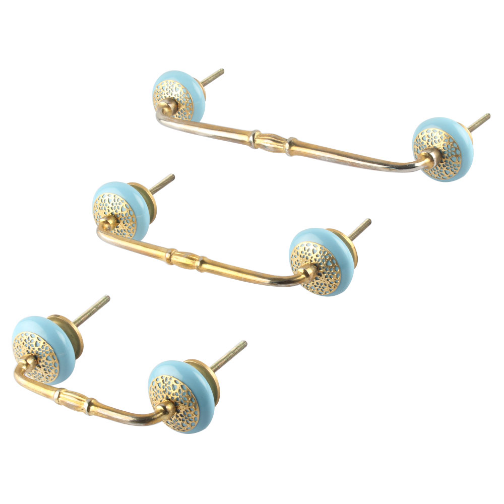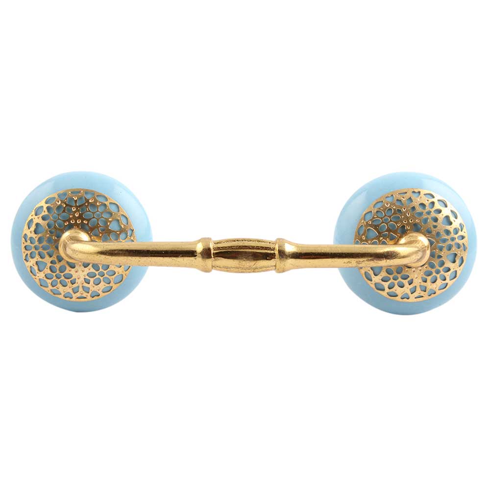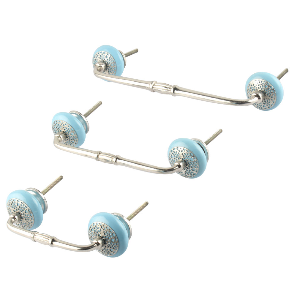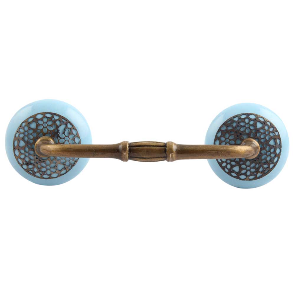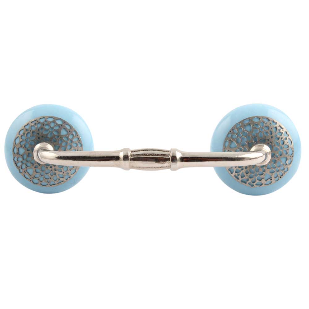 Turquoise Strewn Ceramic Bridge Handle. Ideal for Drawer, Dresser, Cabinet, Wardrobe, Cupboard and Almirah.