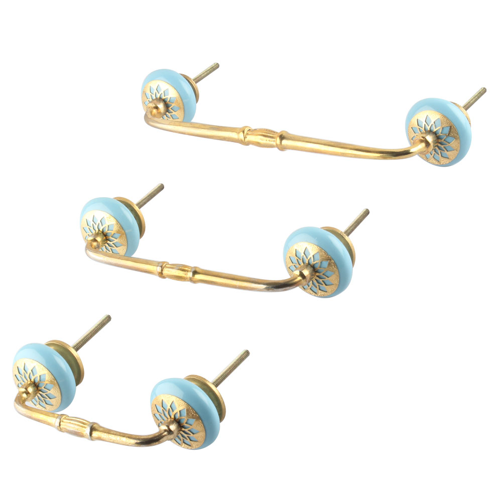 Turquoise Strewn Ceramic Bridge Handle. Ideal for Drawer, Dresser, Cabinet, Wardrobe, Cupboard and Almirah.