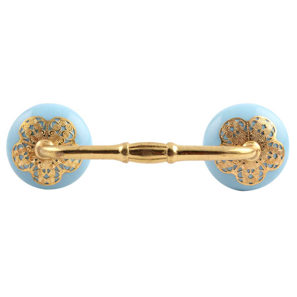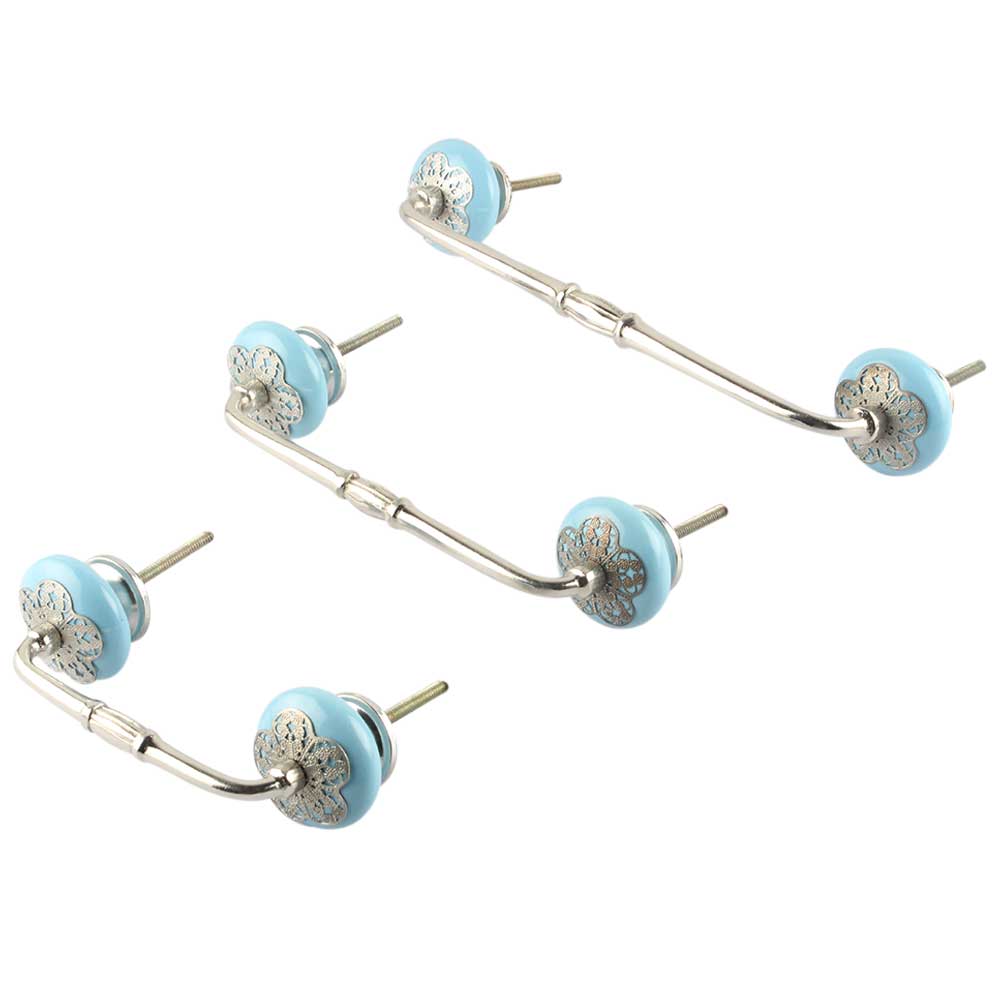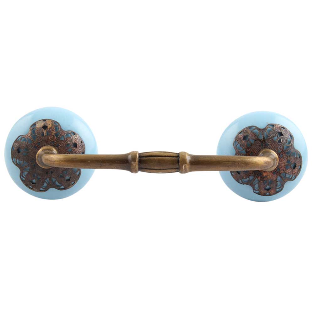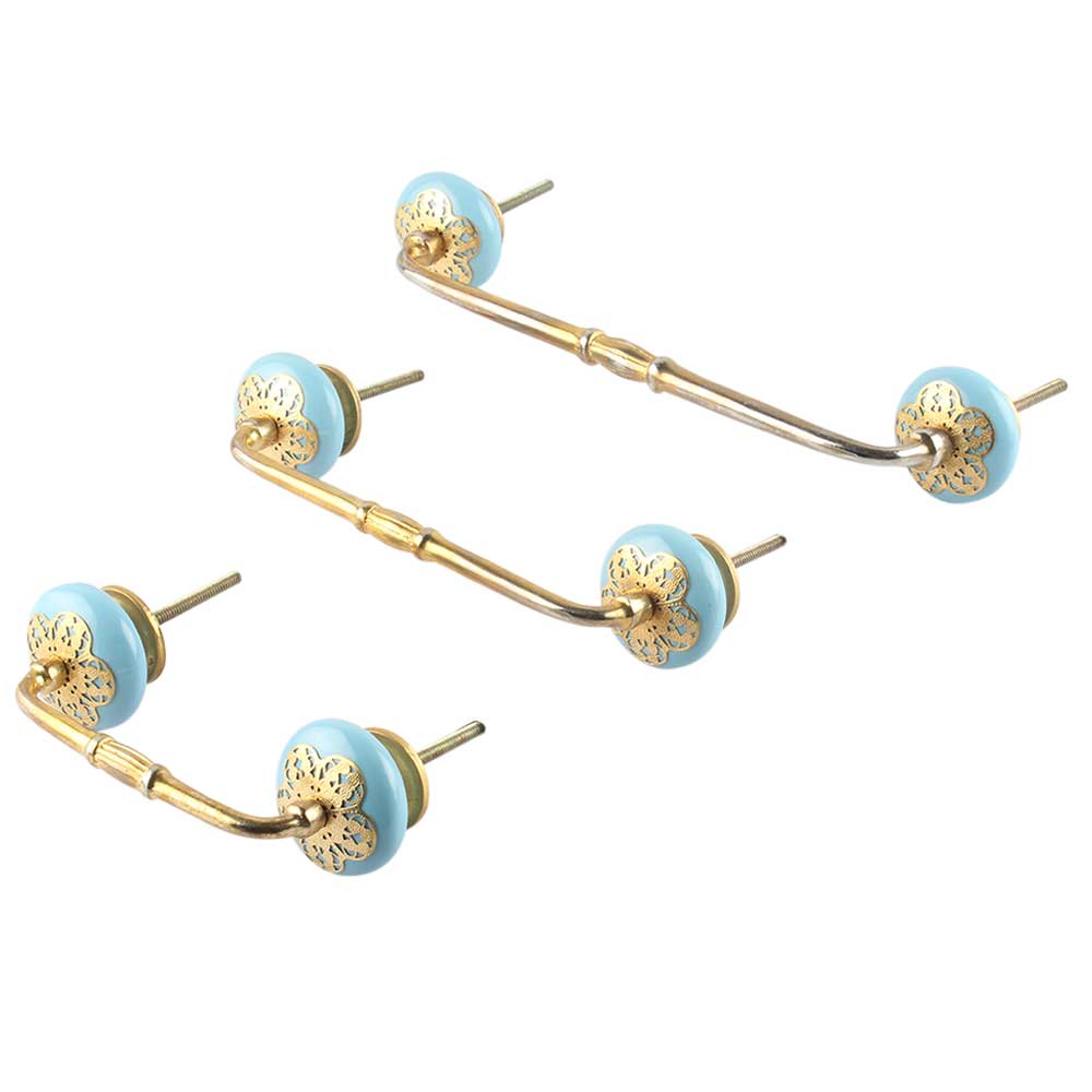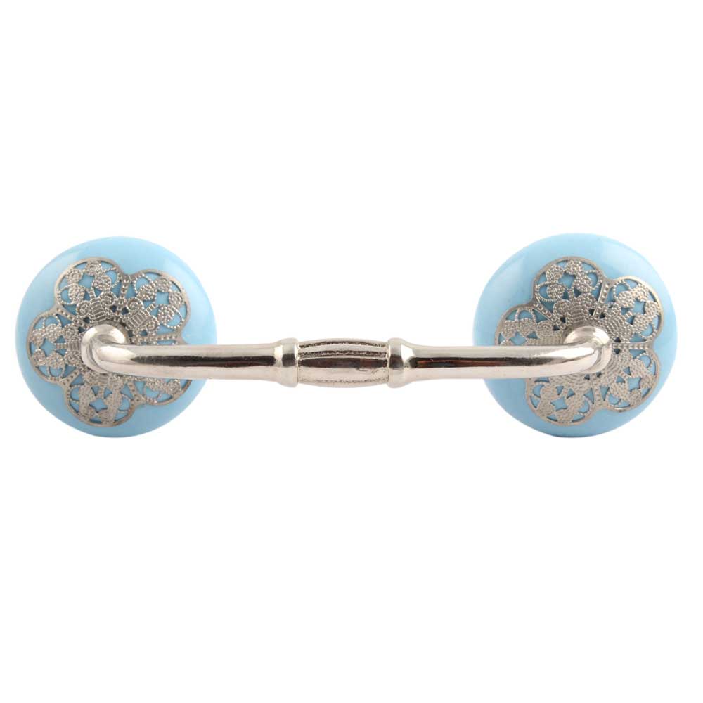Turquoise Strewn Ceramic Bridge Handle. Ideal for Drawer, Dresser, Cabinet, Wardrobe, Cupboard and Almirah.