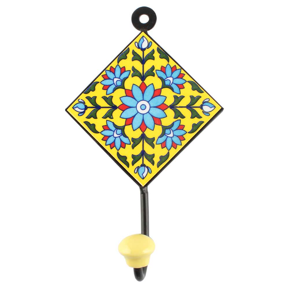 Turquoise Sunflower Ceramic Tile Hook. When Put on Wall or Cabinet It is An Art in Itself. The Metal Part of this Hook is Black Powder Coated.