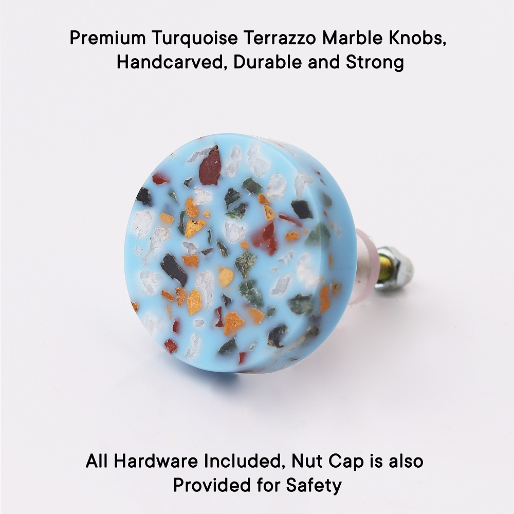Crafted from durable terrazzo and marble, these knobs are not only stylish but also built to last. The smooth, polished surface with a rich turquoise hue and intricate pattern ensures a premium look and feel.
