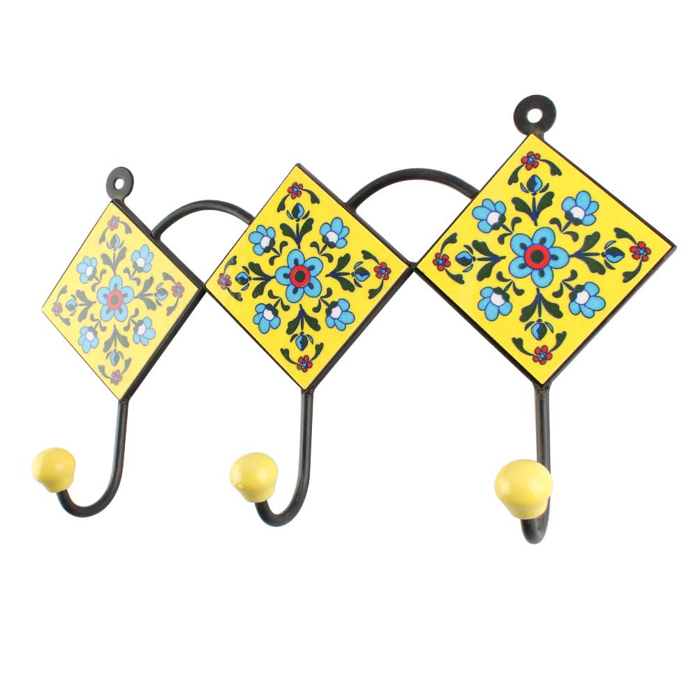 Turquoise Tiny Flower Ceramic Tiles Wall Hook. When Put on Wall or Cabinet It is An Art in Itself. The Metal Part of this Hook is Black Powder Coated.