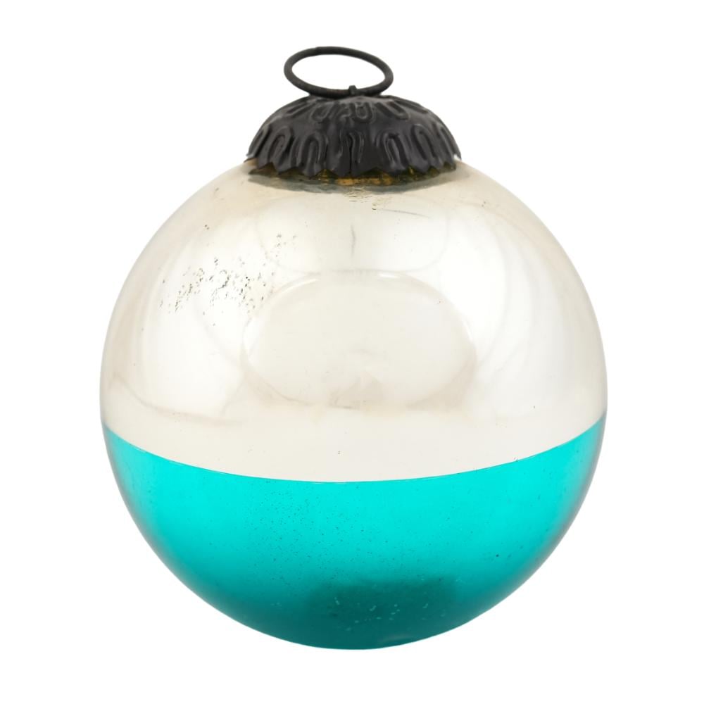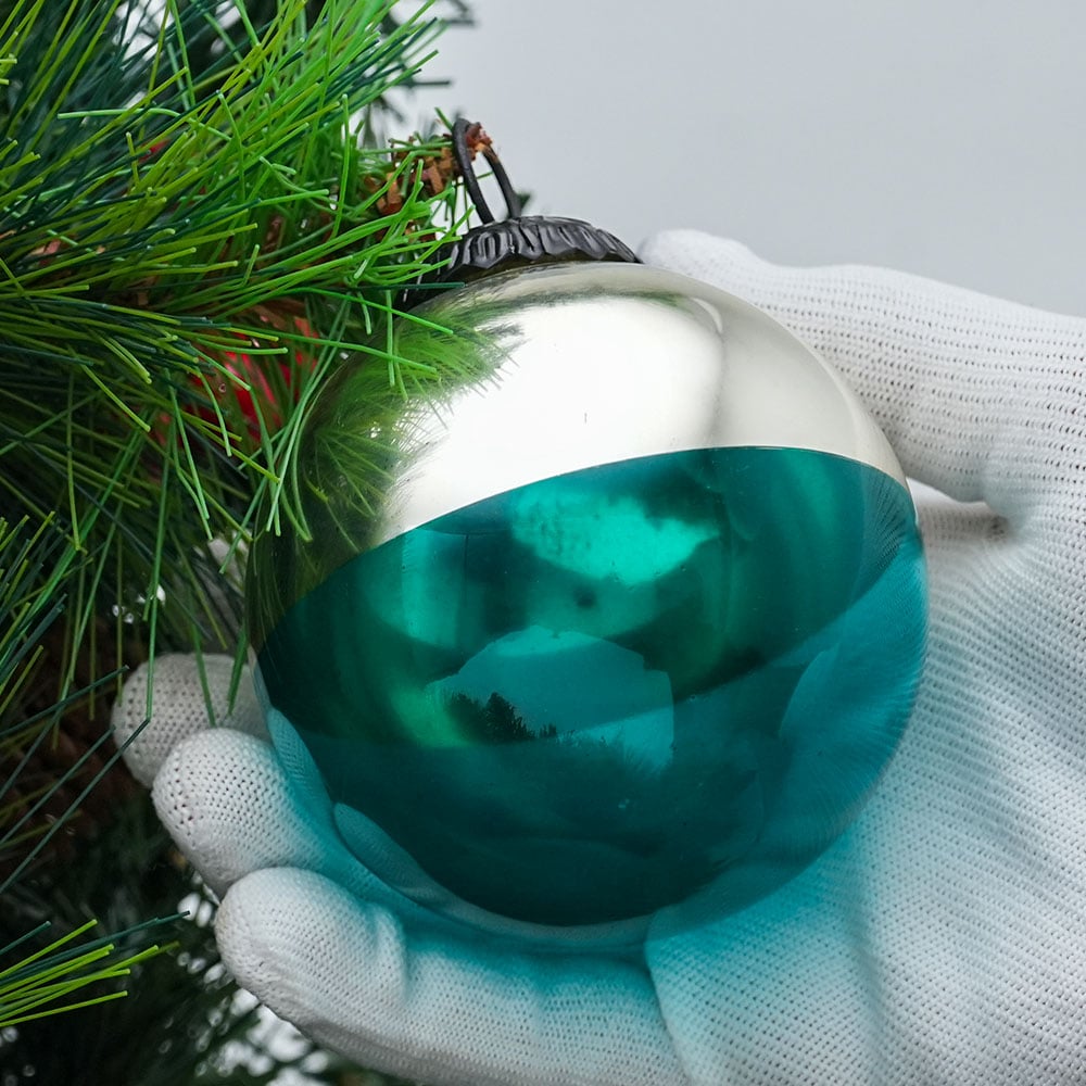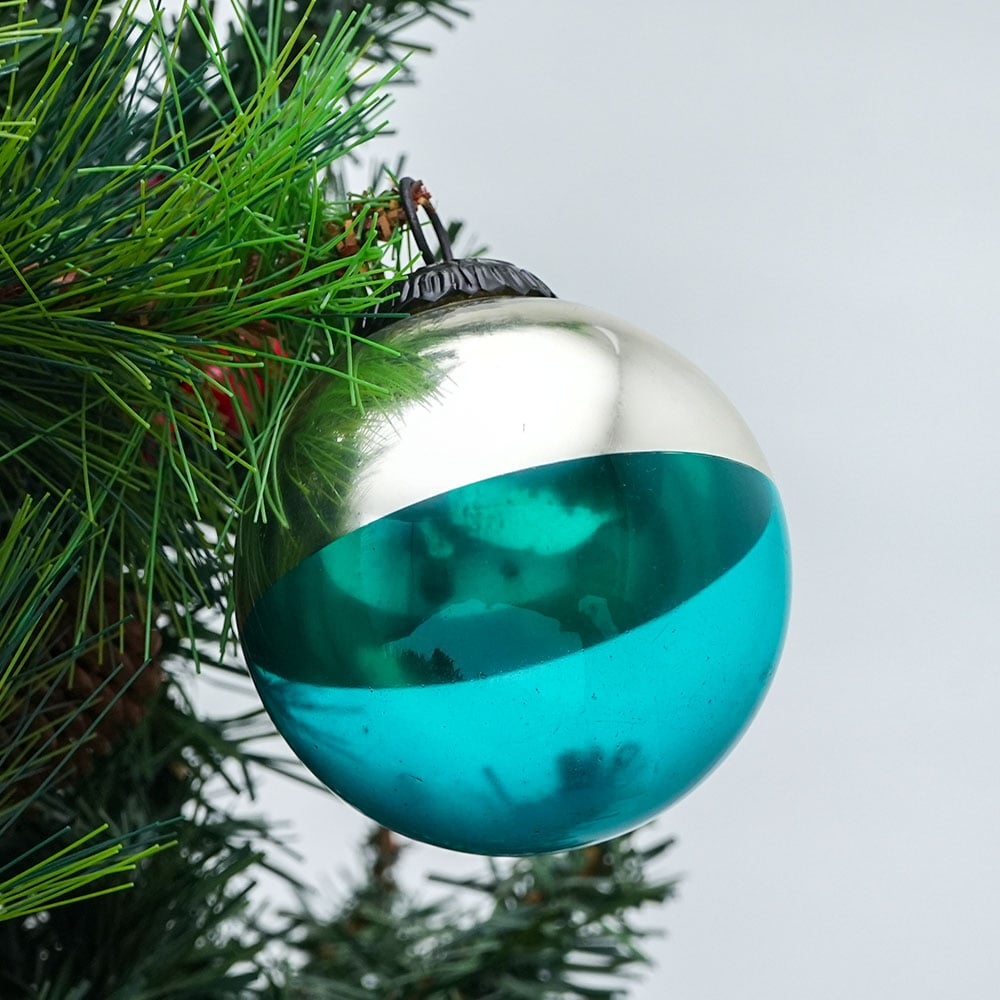 Turquoise Vintage Style Round Glass Christmas Ornament. Crafted from high-quality glass with a smooth glossy finish, this decorative bauble adds a classic and festive touch to Christmas trees, wreaths, and holiday displays.