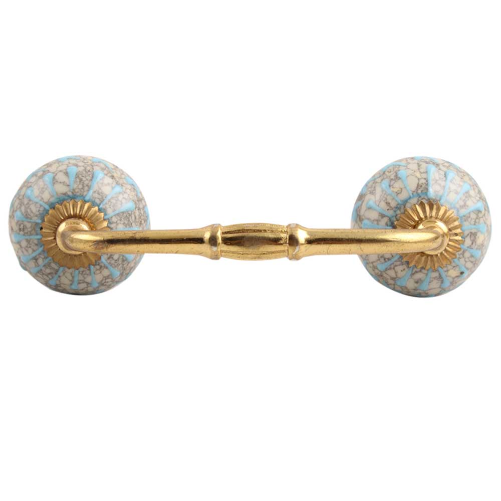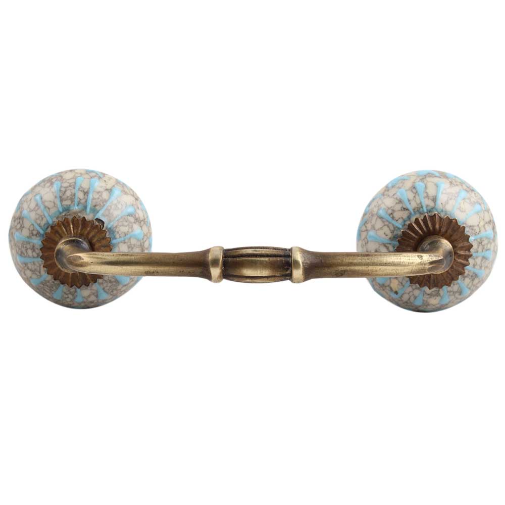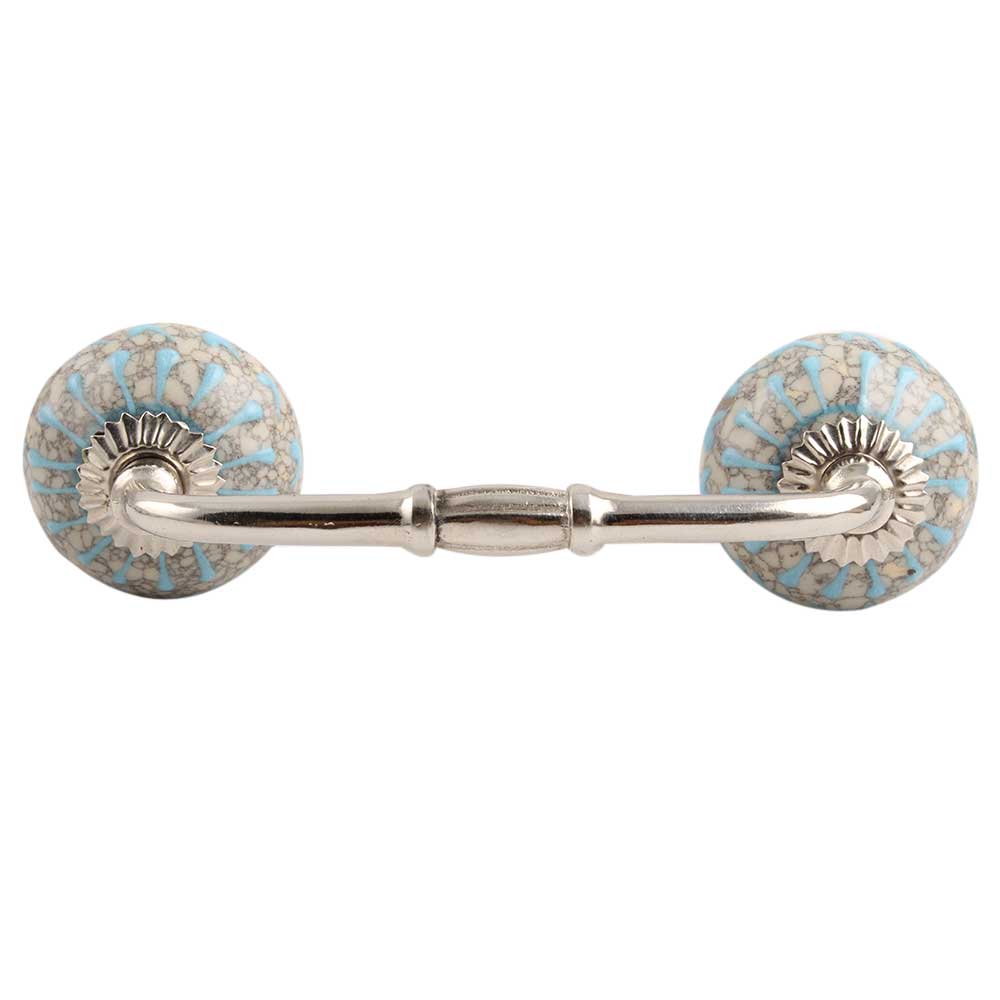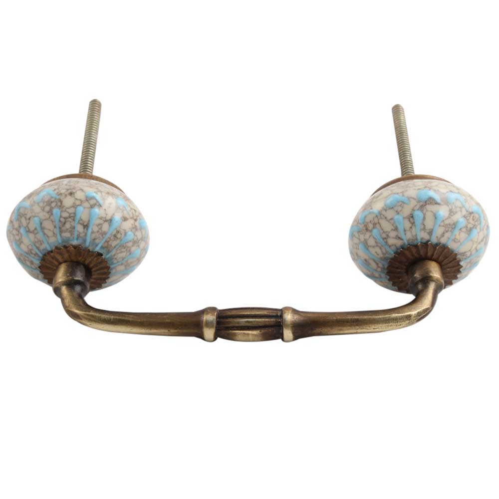 Turquoise Wheel Crackle Ceramic Bridge Handle. Ideal for Drawer, Dresser, Cabinet, Wardrobe, Cupboard and Almirah etc.