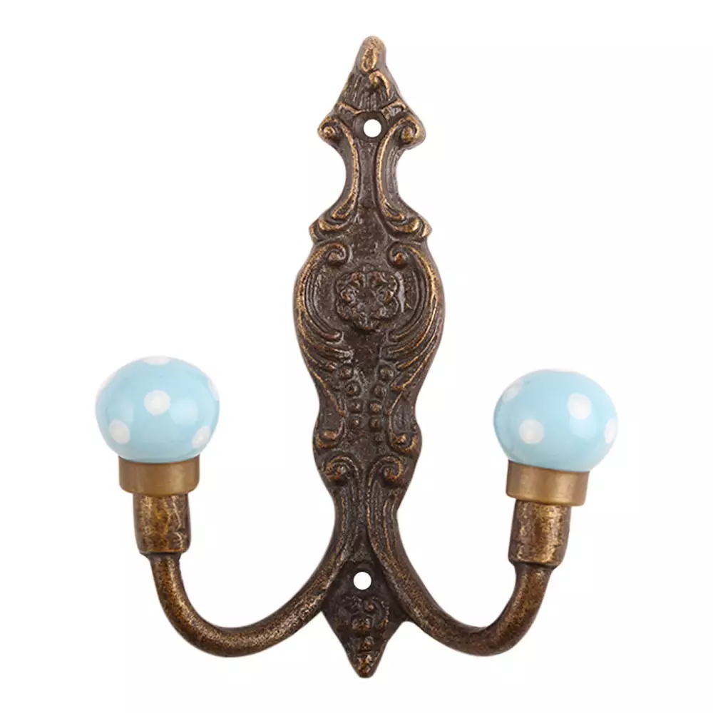 Turquoise White Dot Ceramic Iron Hook. When Put on Wall or Cabinet It Gives A Sturdy Look. This Hook is Strong Enough to Hold Your Cloths, Keys, Tea Cups, Coffee Mugs, Hand Towels Etc