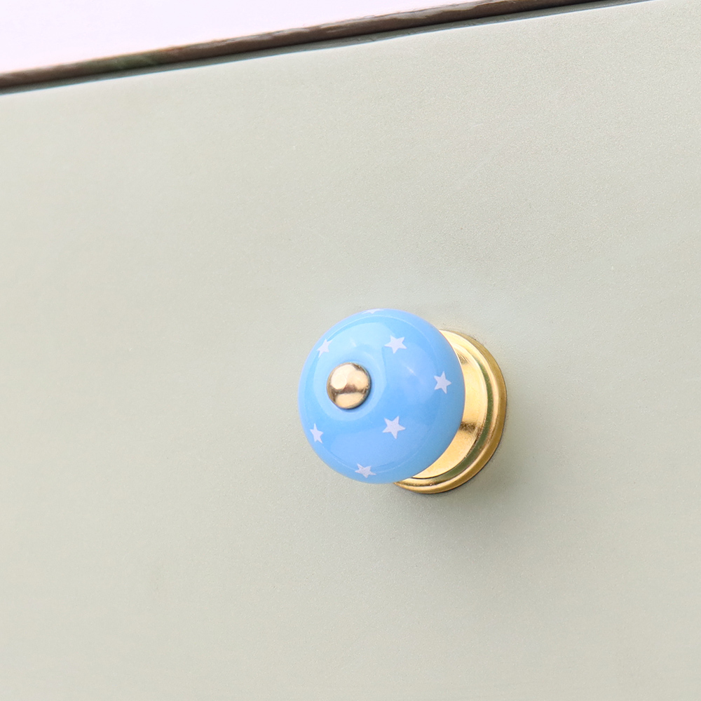 Turquoise White Tiny Star Pattern Cabinet Knobs. Ideal for Drawer, Dresser, Cabinet, Wardrobe, Cupboard and almirah