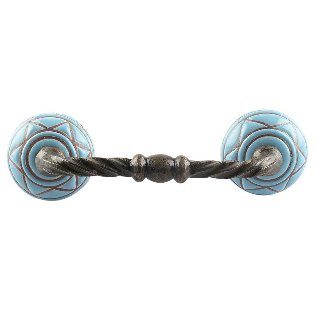 Turquoise With Brown Pattern Etched Ceramic Cut Bridge Handle. Ideal for Drawer, Dresser, Cabinet, Wardrobe, Cupboard and Almirah etc.