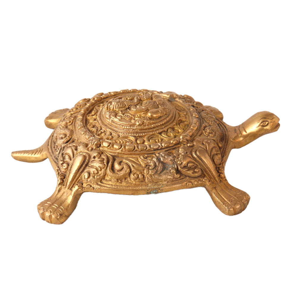 The Turtle Ganesha miniature sculpture is a popular idol in both Yantra Feng Shui and Vaastu practices. This unique indian statue depicts the Hindu god Ganesha sitting on top of a turtle. The turtle is a symbol of stability and grounding, while Ganesha is the god of prosperity, good luck, and wisdom. In Yantra Feng Shui, the Turtle Ganesha is believed to bring good fortune and success, as well as protect against negative energy. It is often placed in a prominent location in a home or office to enhance the flow of positive energy and stimulate abundance. Similarly, in Vaastu, the Turtle Ganesha brass figurines is thought to bring prosperity and wealth to a home or business. It is often placed in the north or east direction of a building to enhance positive energy and attract success and abundance.