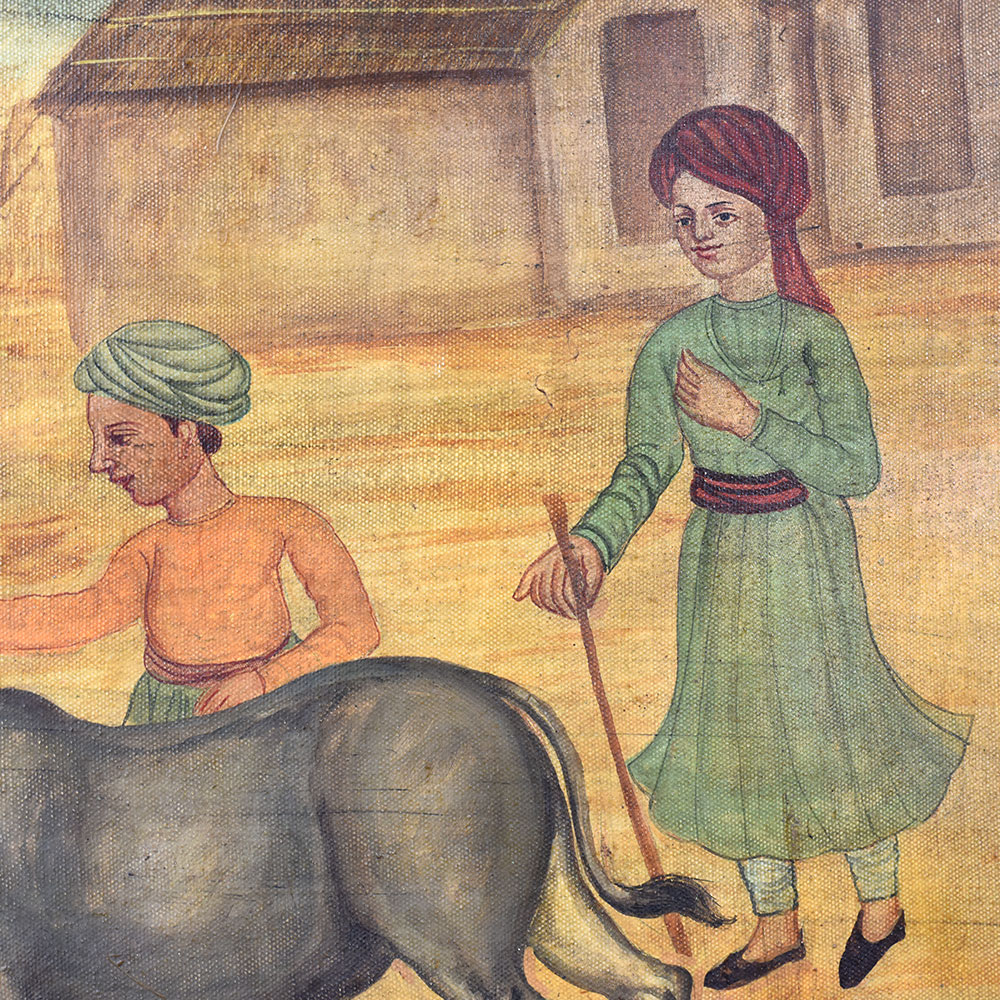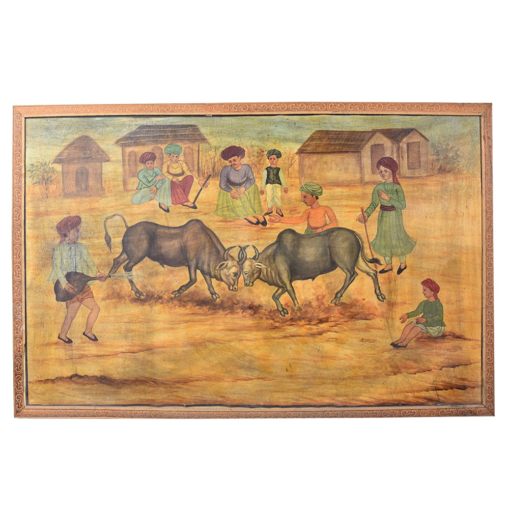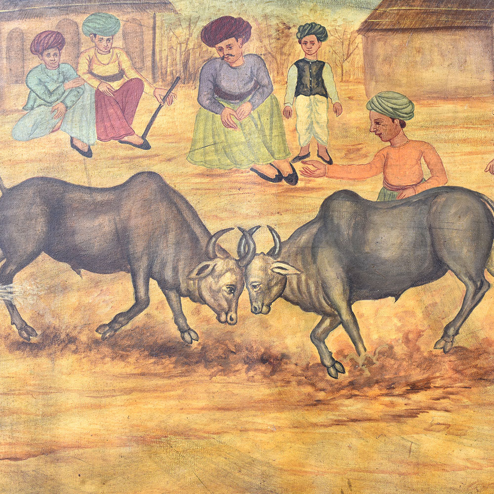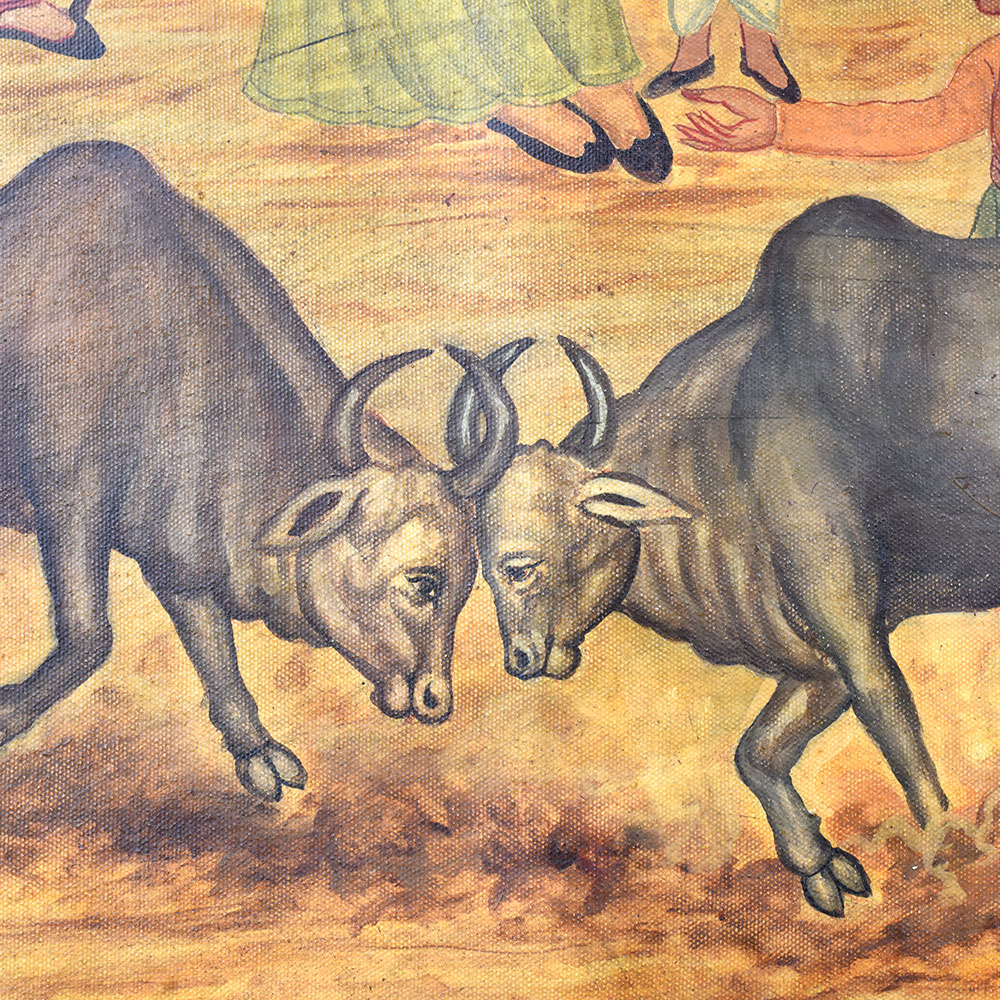 - Breathtaking canvas painting depicting two bulls locked in mortal combat