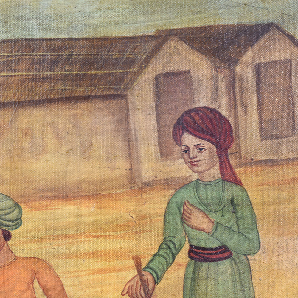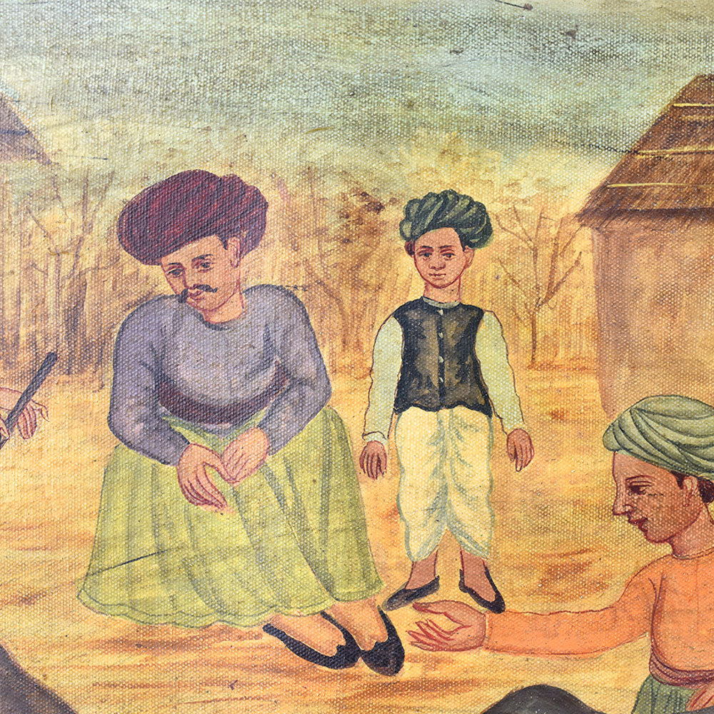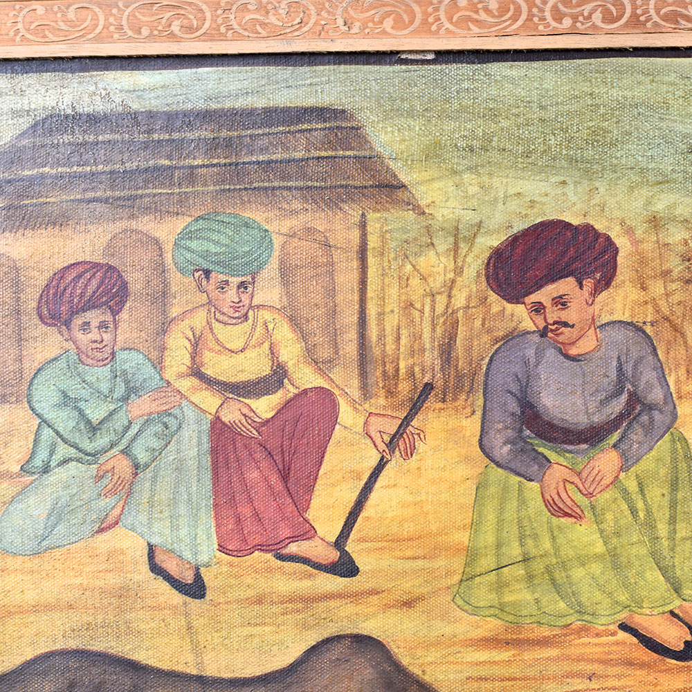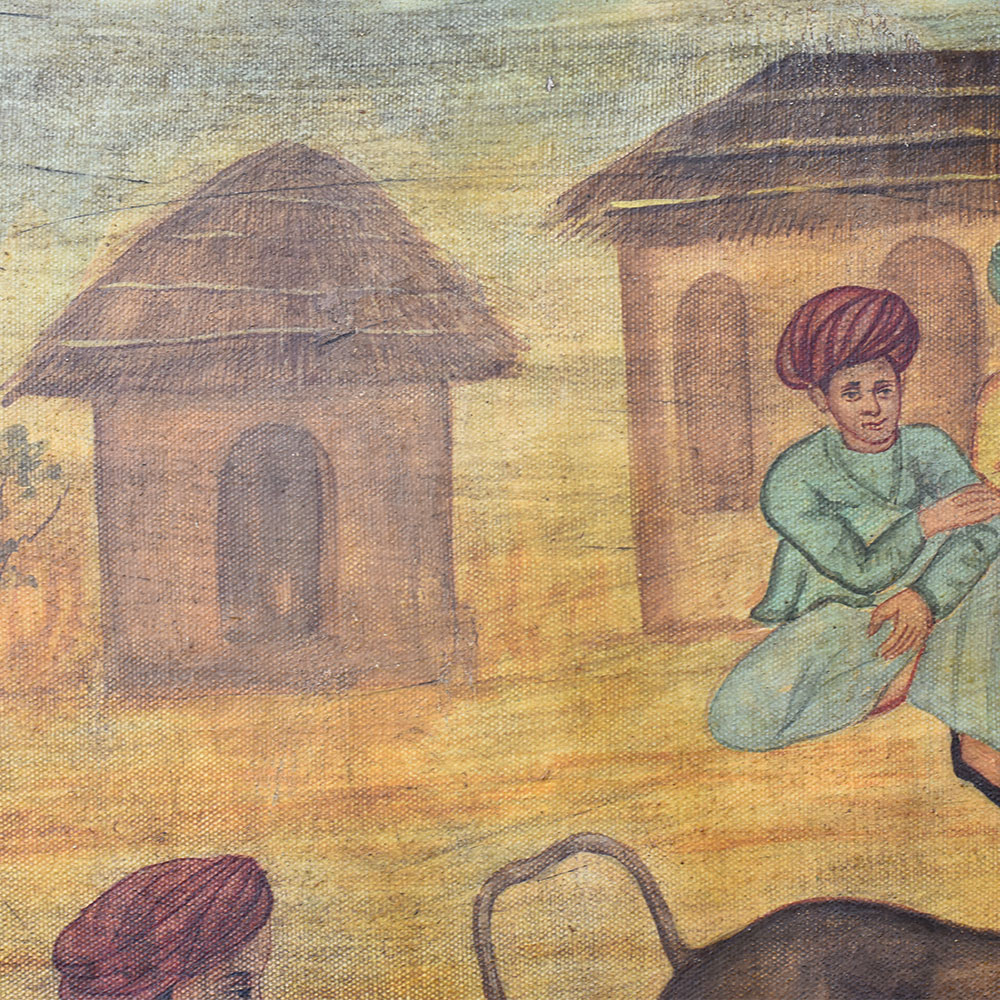 - Breathtaking canvas painting depicting two bulls locked in mortal combat