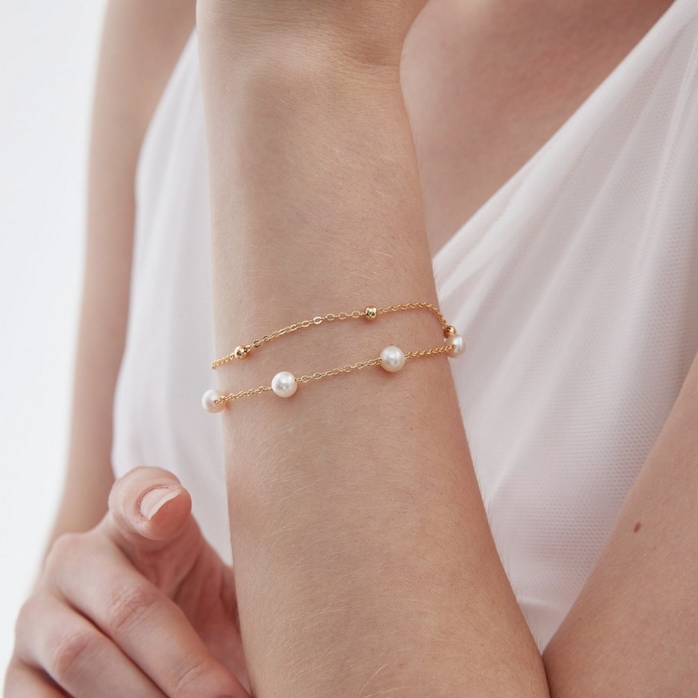 - Design: Doublelayer bracelet featuring pearls on each strand