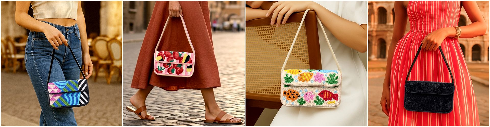 Luxury Handmade Beaded Shoulder Bag Beach Scene Summer Pattern Purse...