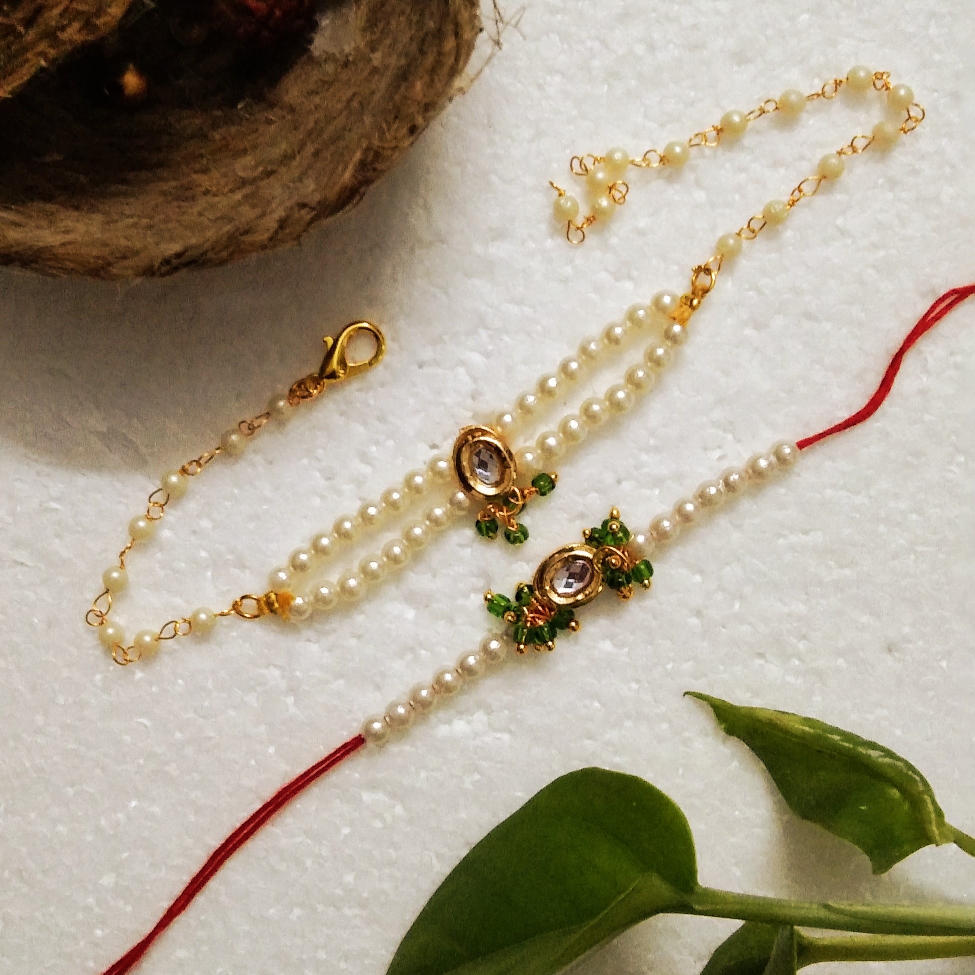 Celebrate Raksha Bandhan with a unique rakhi crafted from kundan/acrylic beads.