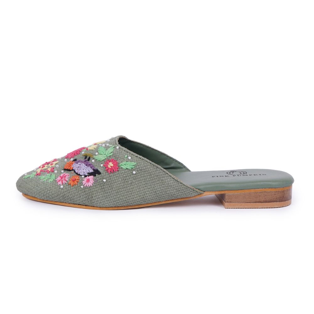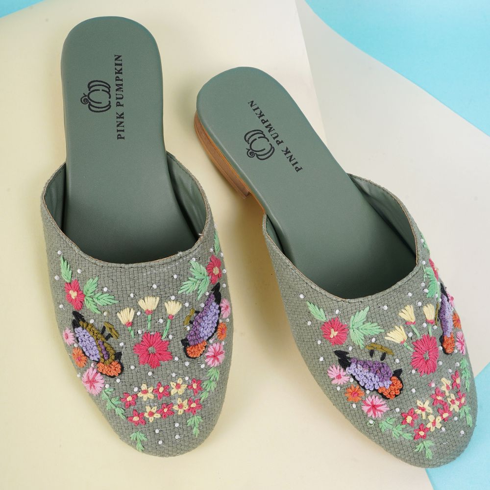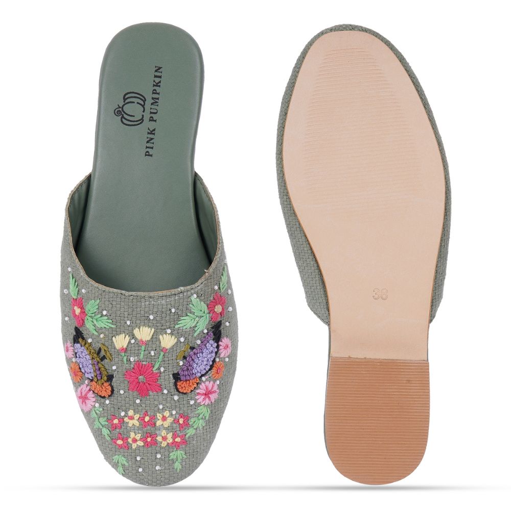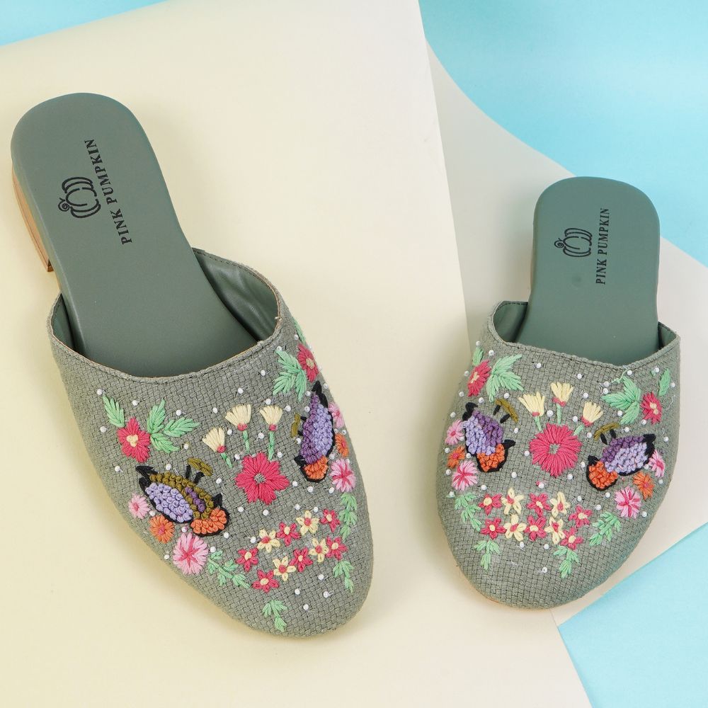 This mules unites embroidered, vibrant design with cotton fabric, rexin, tunit craftsmanship in a vibrant palette. Created for boutique owners, it enhances personal style or makes a memorable gift. Packed and quality checked by Indianshelf. Each piece is uniquely crafted by skilled artisans.