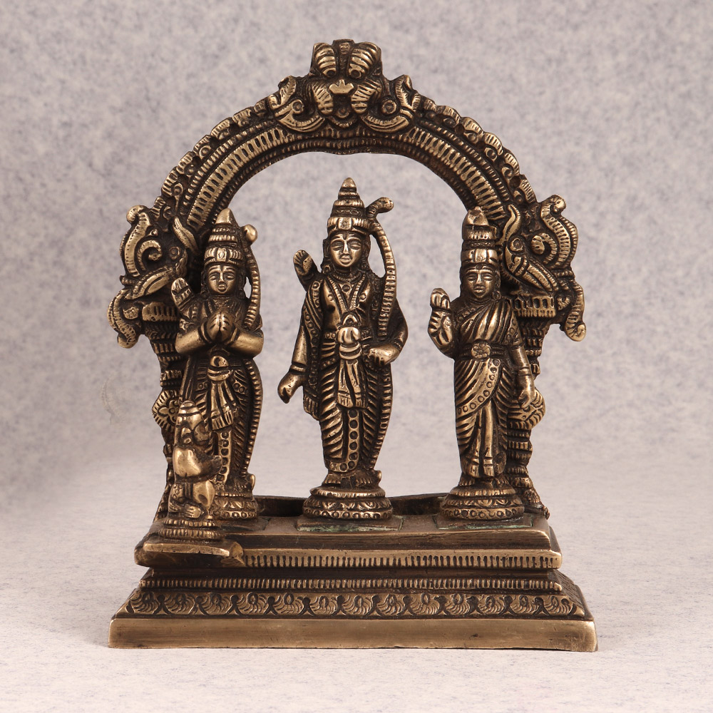Unlock the timeless charm of ancient India with the exquisite Vintage Brass Ram Darbar. This stunning piece, crafted with meticulous attention to detail, brings the rich cultural heritage of the Ram Darbar directly into your living space. Infuse your home with a sense of reverence and historical significance. The Vintage Brass Ram Darbar serves as a mesmerizing focal point, drawing the eye and captivating all who behold it. Imagine the serene atmosphere it will create, evoking the timeless traditions of the East. This exquisite piece is perfect for those who appreciate the beauty of ancient Indian art and culture. Display it in your meditation space, living room, or entryway to create an ambiance of tranquility and spiritual connection. As a thoughtful gift, the Vintage Brass Ram Darbar will be cherished by anyone who values the rich tapestry of global heritage. Elevate your home's decor and immerse yourself in the captivating essence of the Ram Darbar. Acquire this stunning piece today and let it transport you to a realm of timeless elegance and cultural reverence.