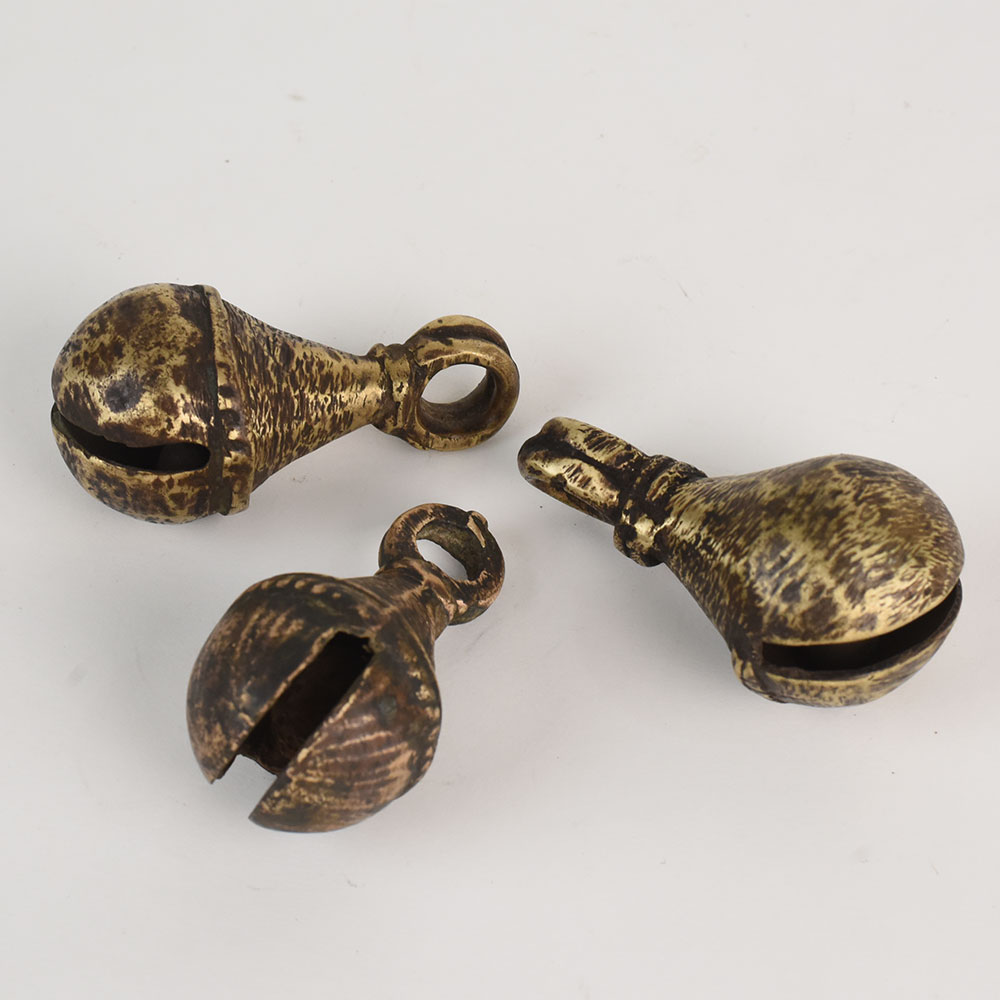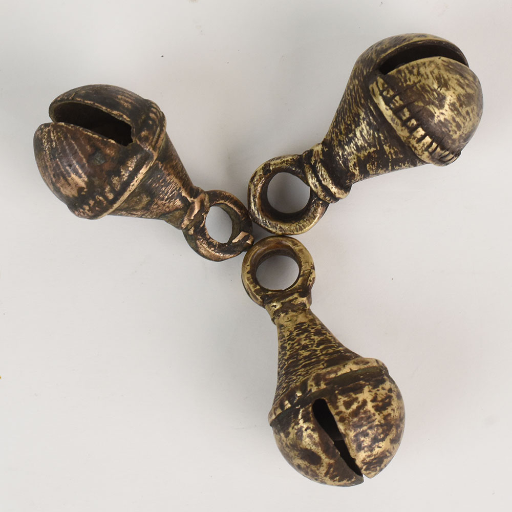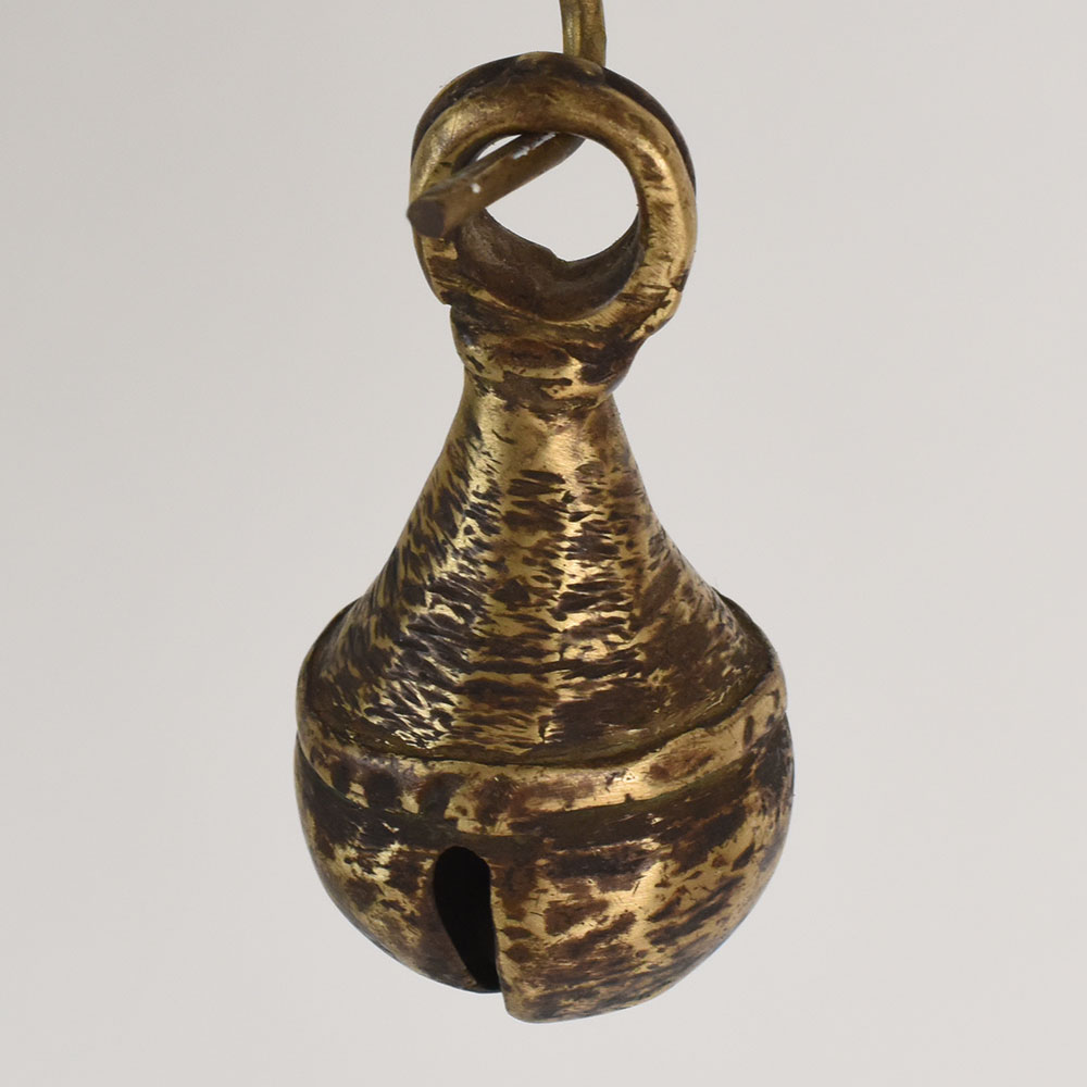 Bring rustic charm and cultural heritage into your home with this Vintage Bell Metal Cow Bell Set of 3 from Northern India. Traditionally handcrafted by skilled artisans, these bells were originally used on cattle in rural villages, prized for their deep, melodic chime and durable construction. Each bell in this set features a beautifully aged, hammered metal finish and a unique shape, reflecting the authentic craft techniques passed down through generations. These vintage bells make stunning decorative accents for farmhouse, boho, and rustic interiors. Hang them together as wall dcor, display them on shelves, or incorporate them into festive dcor arrangements. Their warm antique patina and handcrafted details add character and storytelling to any space. Whether used as dcor or gifted to someone who appreciates cultural artifacts, this set of bells brings an earthy, timeless elegance to your collection.