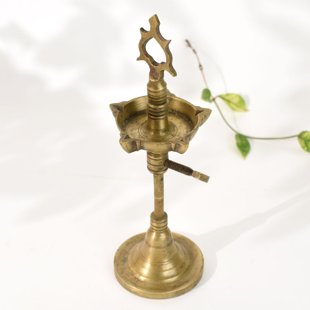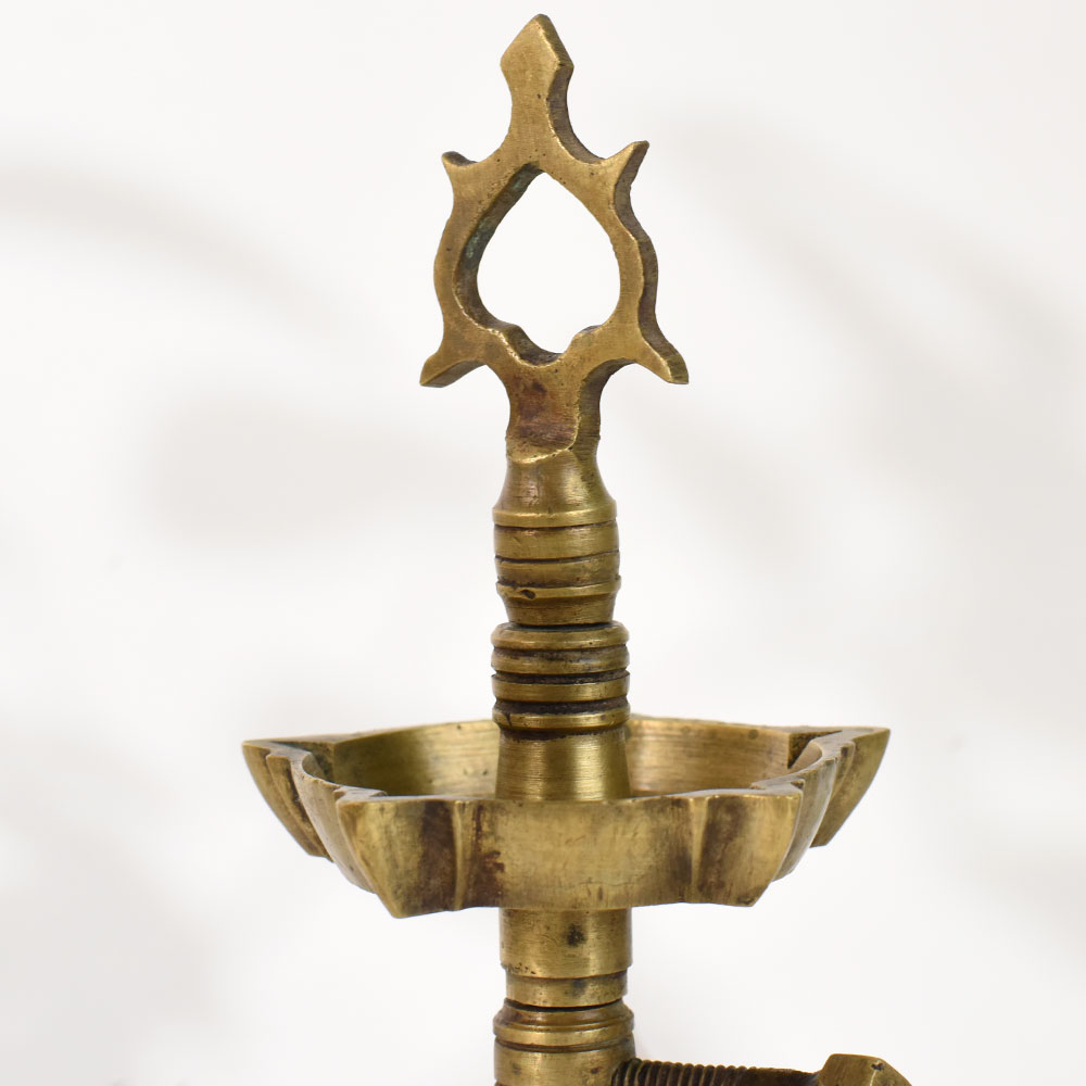 - Handmade brass diya with traditional South Indian temple-inspired design
